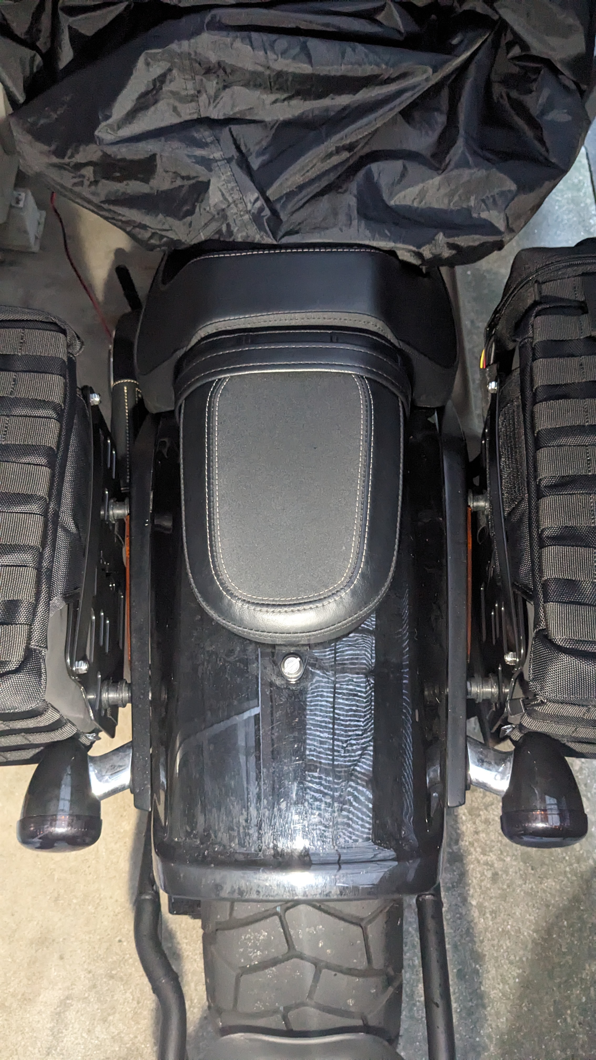 FXFBSに両サイドバッグが付けたくて購入しました。自分の場合、スリップオンマフラーなのとドッキングハードウェアを付けてるので、ポン付けだとマフラーエンドに干渉したり、バッグがちゃんと付かなかったりしたので別途ブラケットで取り付けました。やはりブラケット固定は安定感があります。