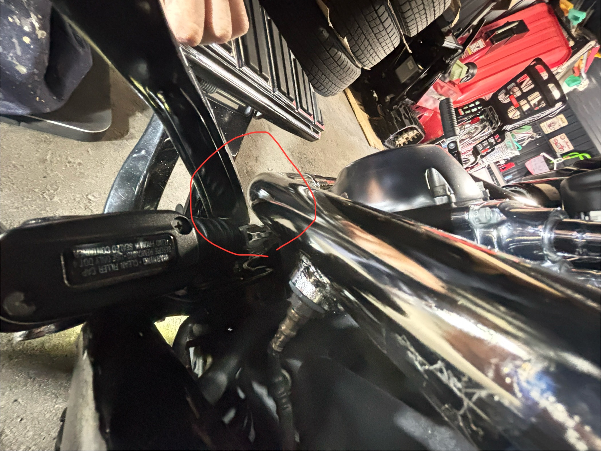 バッサニターンアウト装着時に使用純正だとクリアランスがなく、マフラーにリアブレーキアームがあたります