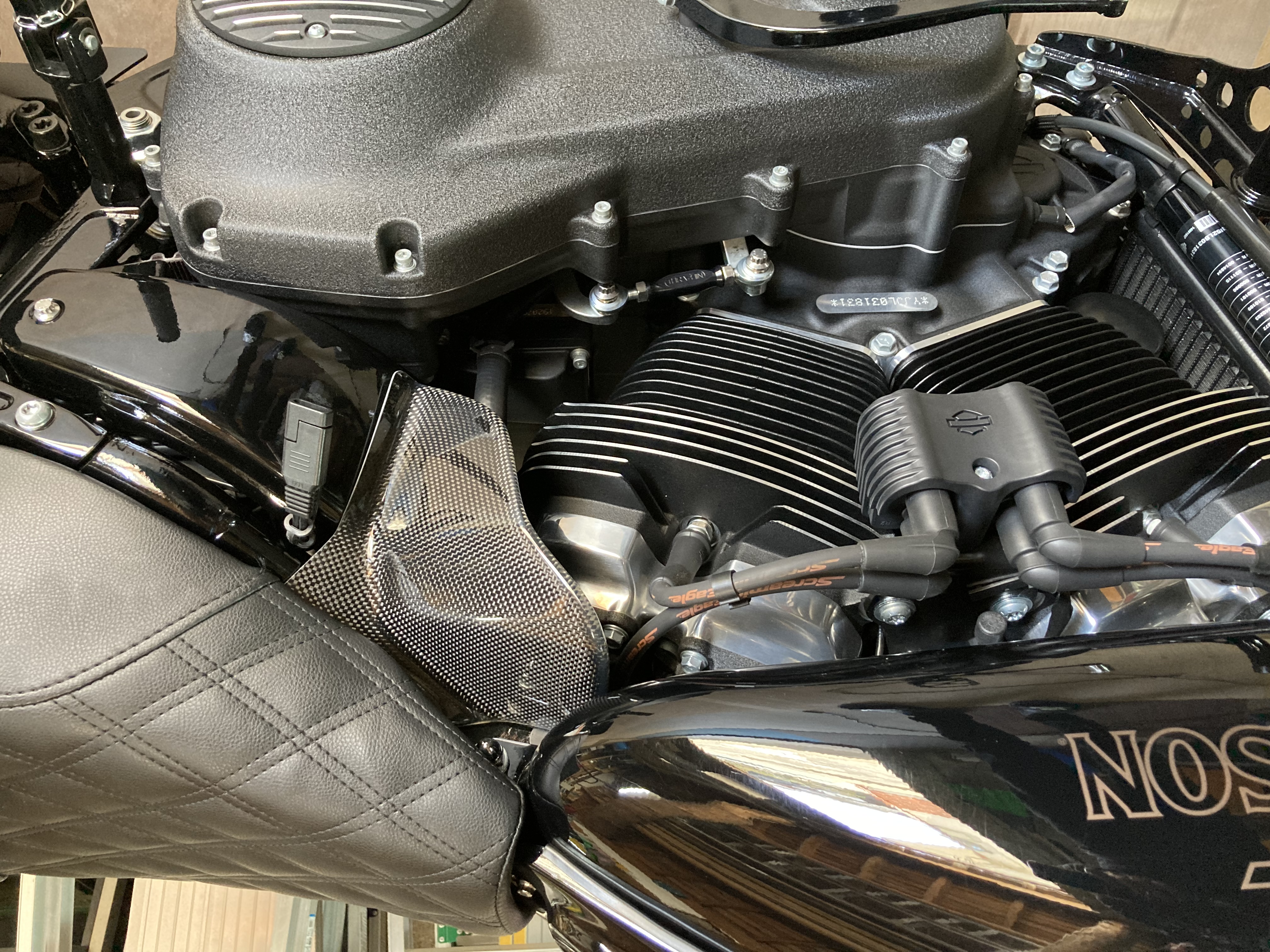 ハーレー中心に二輪のオリジナルカスタムパーツ製造・販売を生業とするフルゲインのヒートガードは、エンジンやエキパイの熱からライダーの太ももを守ります。