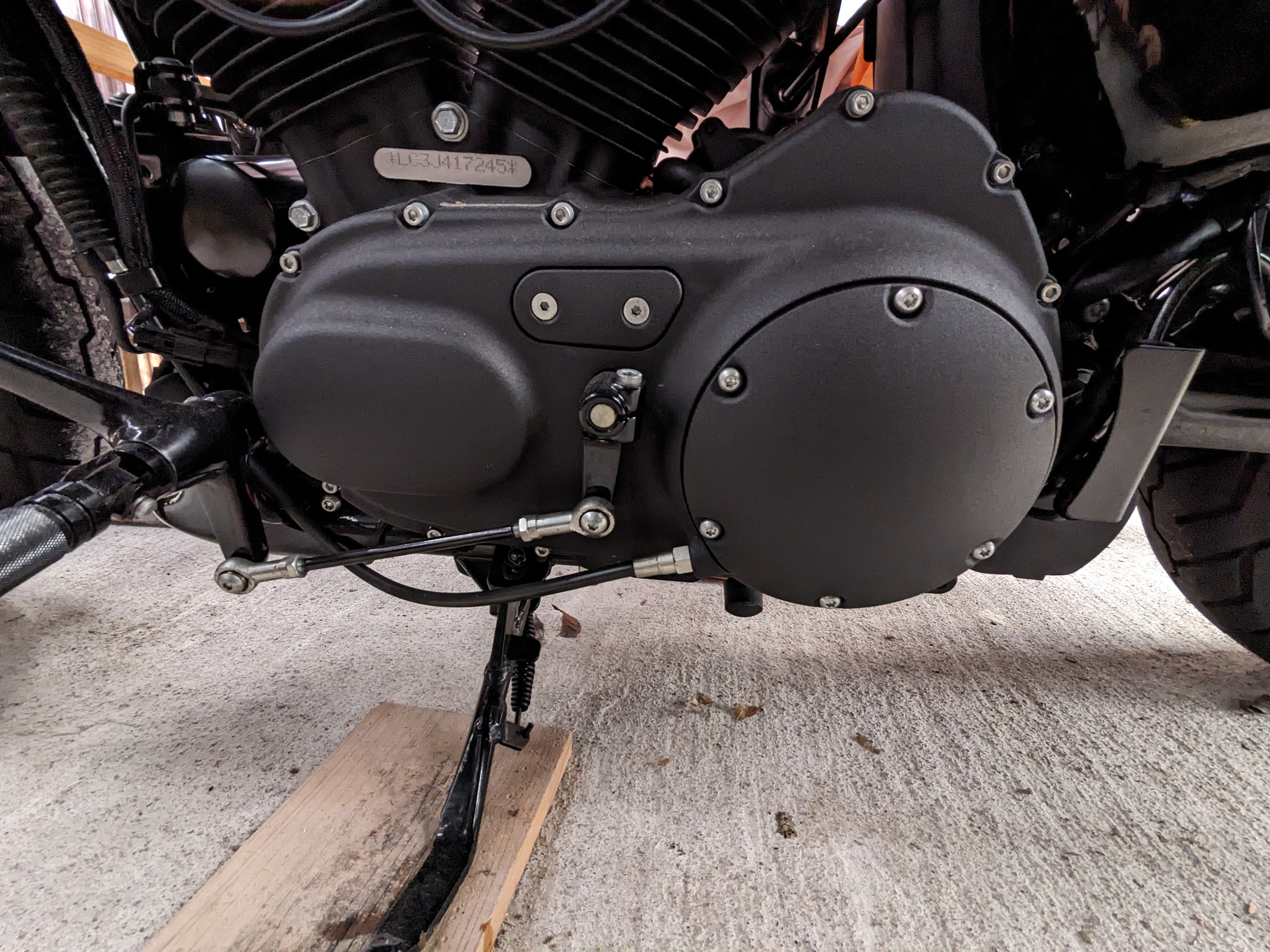 ざらざらした質感のリンクルブラックのみで仕上げられたシンプルなダービーカバーは、ブラックアウトされたエンジンに最後の仕上げを加えます。
