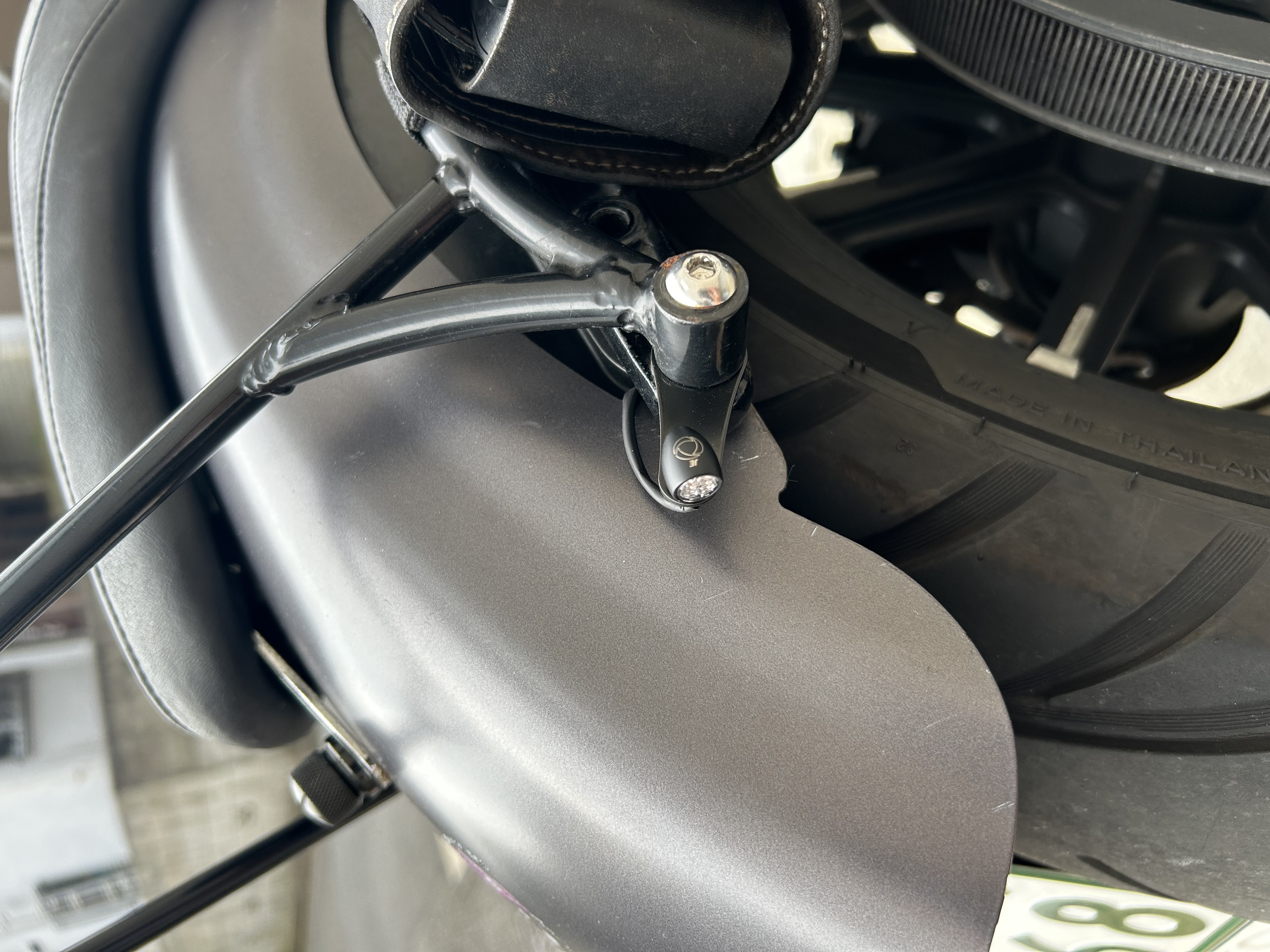 サイドナンバーでサイドバッグを付けているため、ちゃんと見えるこんな位置に付けてみました。 点灯していないと何処に付いているか分かりません。