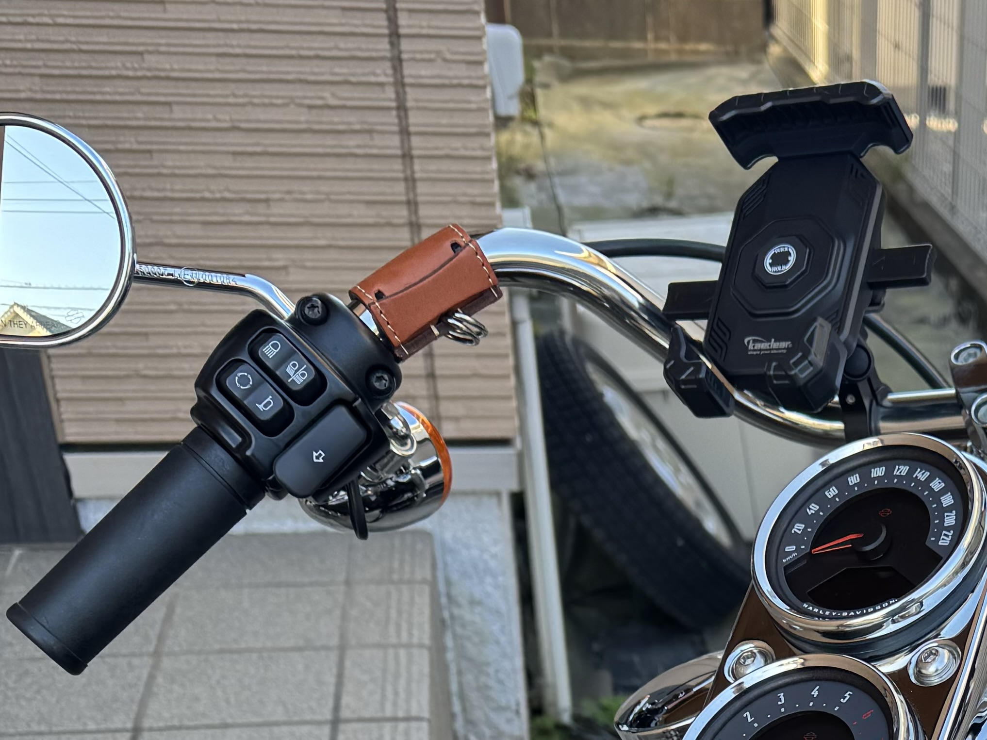 取り付けは簡単です。まだ実際にサングラスを差し込んではいないですが、ハンドルのワンポイントとして良いと思います。