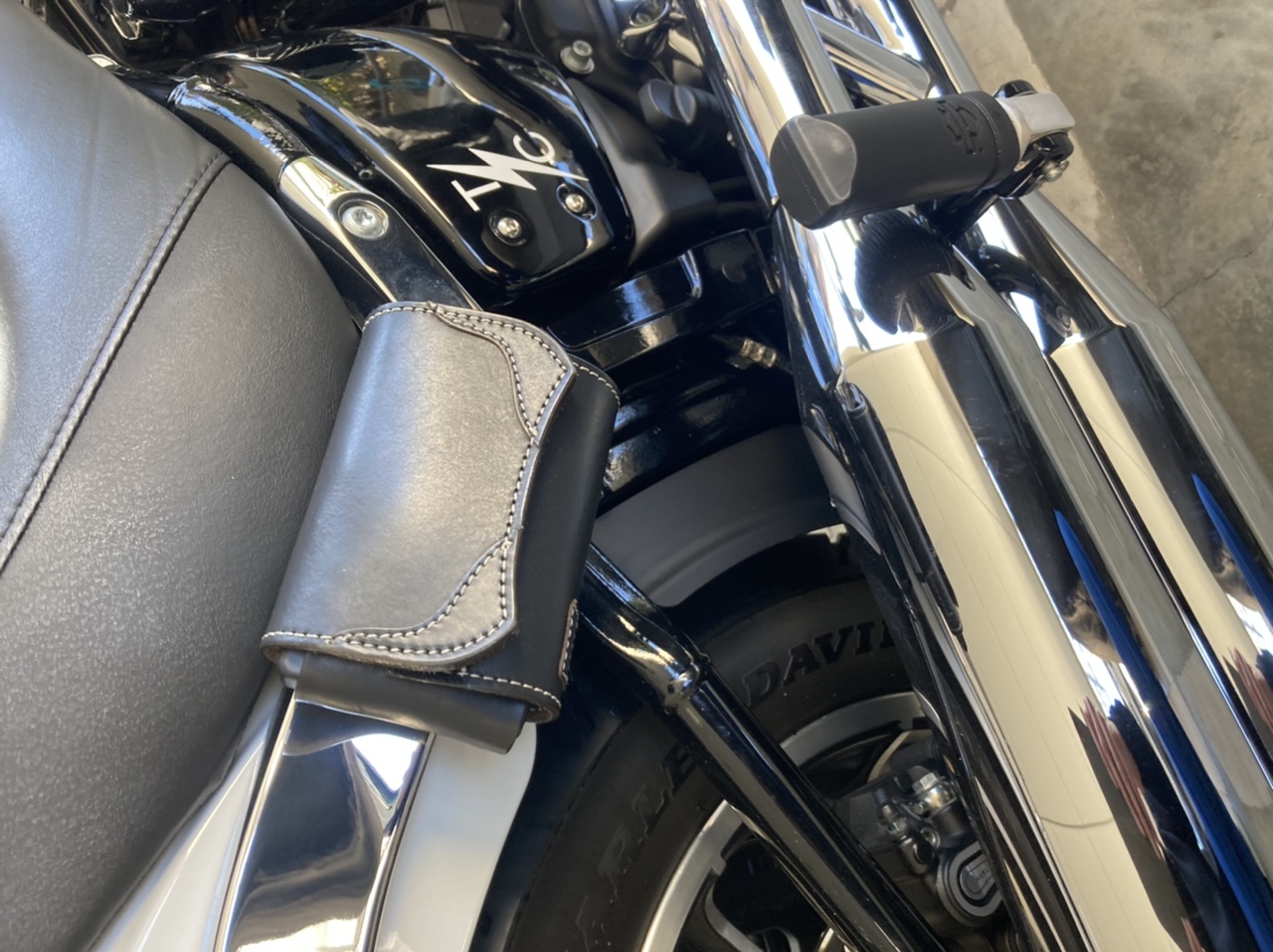 中古で購入した車両にはフェンダーストラットの位置に革製のETCケースが取り付けられておりました。