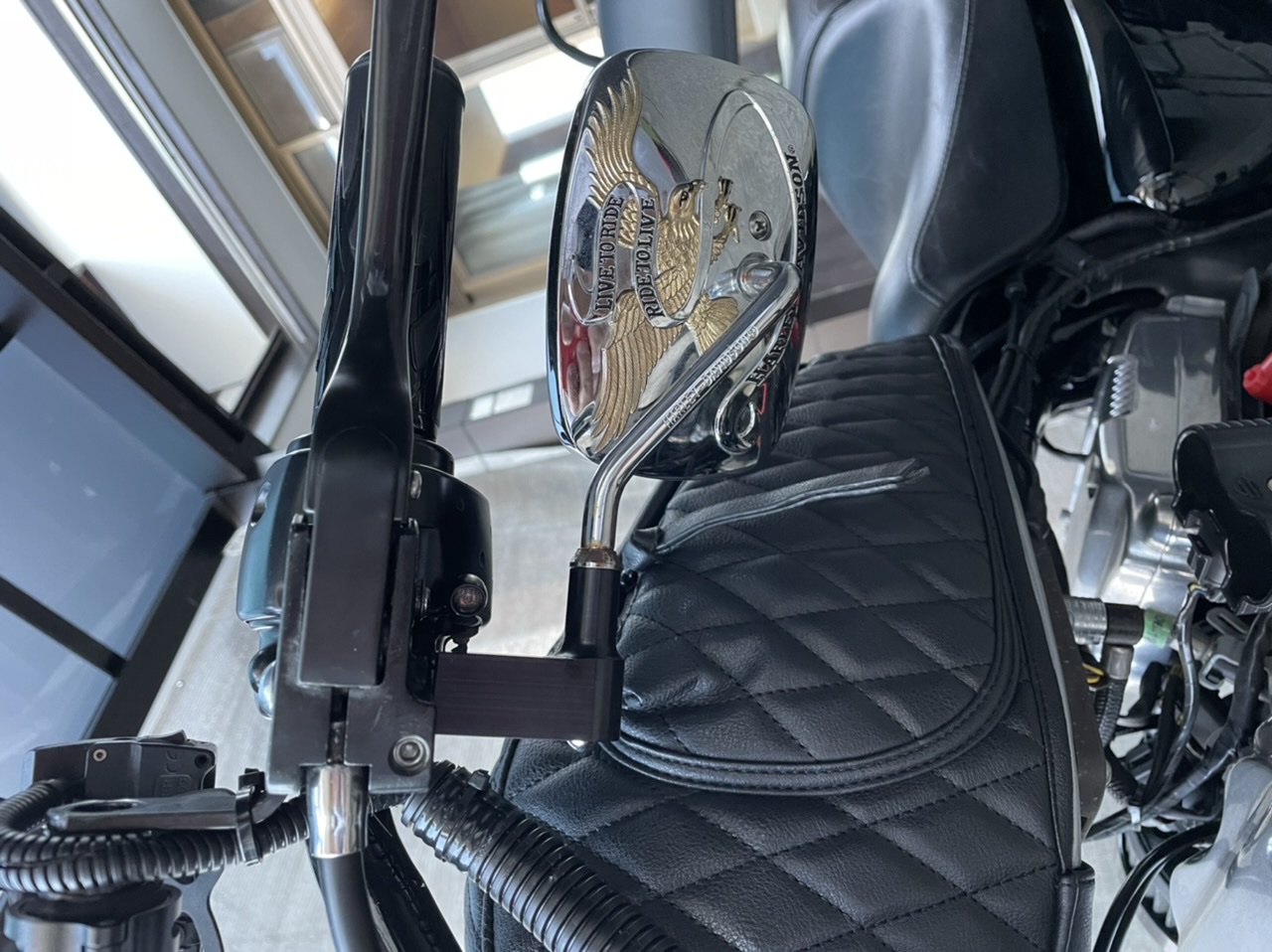 ハンドルをフィフティーバーハンドルにしたらミラーの角度が上手くいかず、色々悩んでこの商品にしましたー。