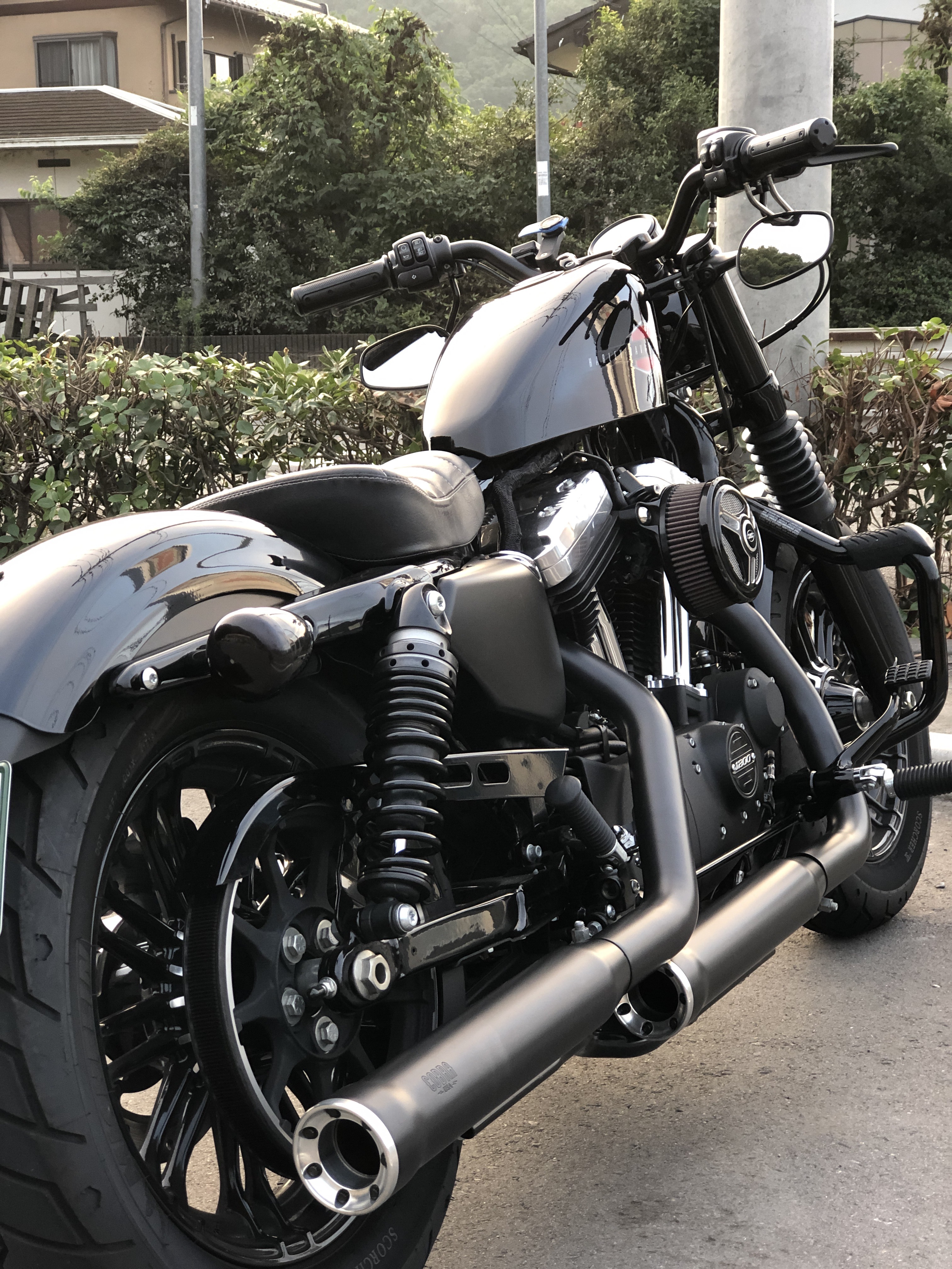 883アイアンの北米マフラー16ミリパンチアウトからコブラに交換しました、噂通りの重低音がなんとも気持ちよく響きます。