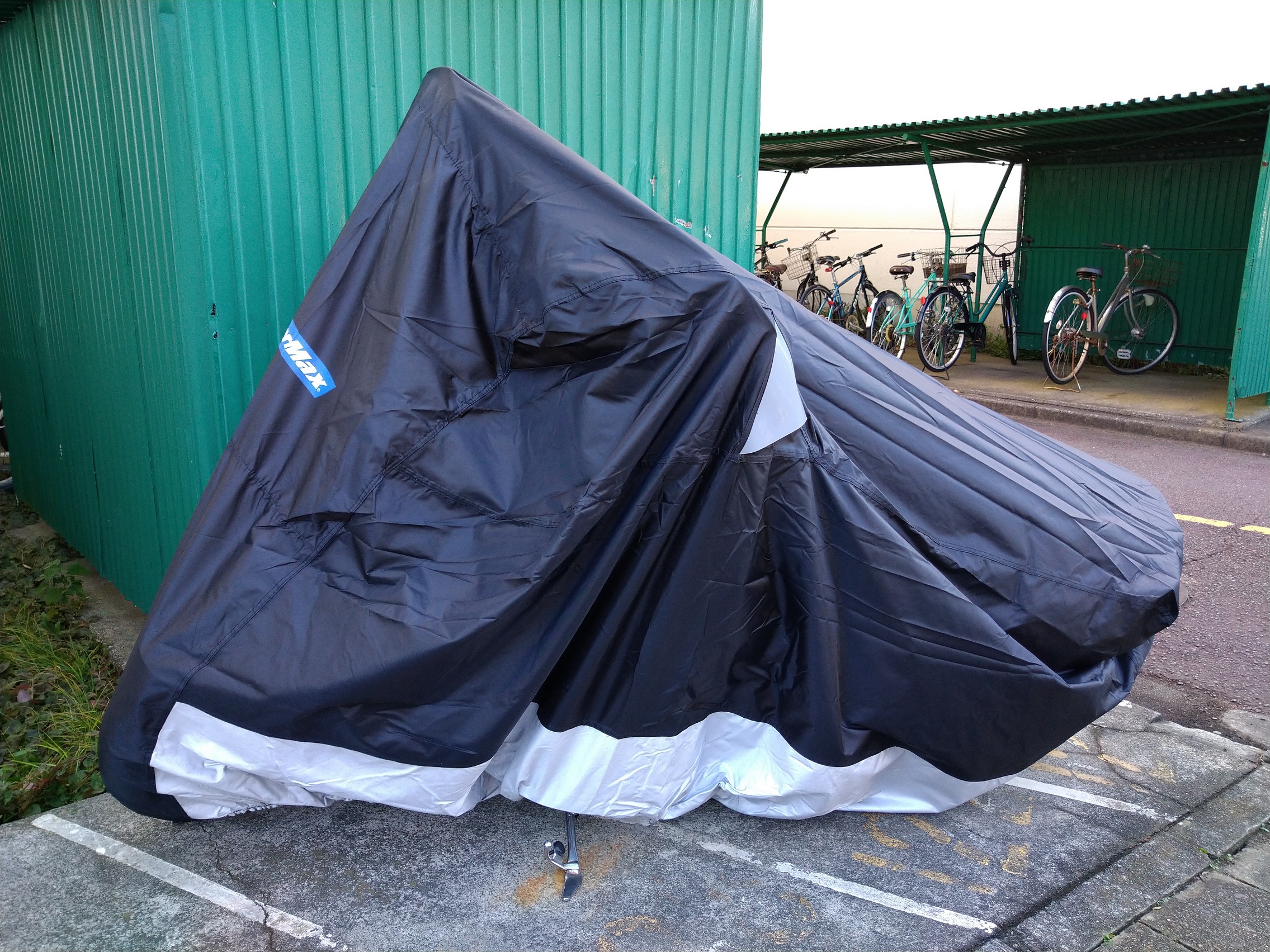 今まで使っていたバイクカバーよりも使いやすく、かつタイヤ周りまでしっかりと覆ってくれるので雨も防げそうです。