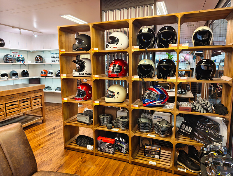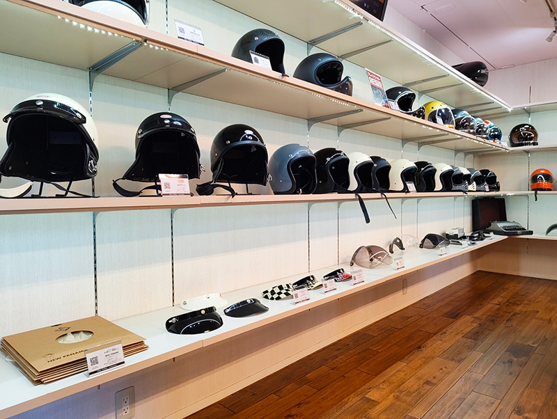 店頭ではヘルメット試着やパーツ・グッズの購入、カスタムの相談や車検の相談など