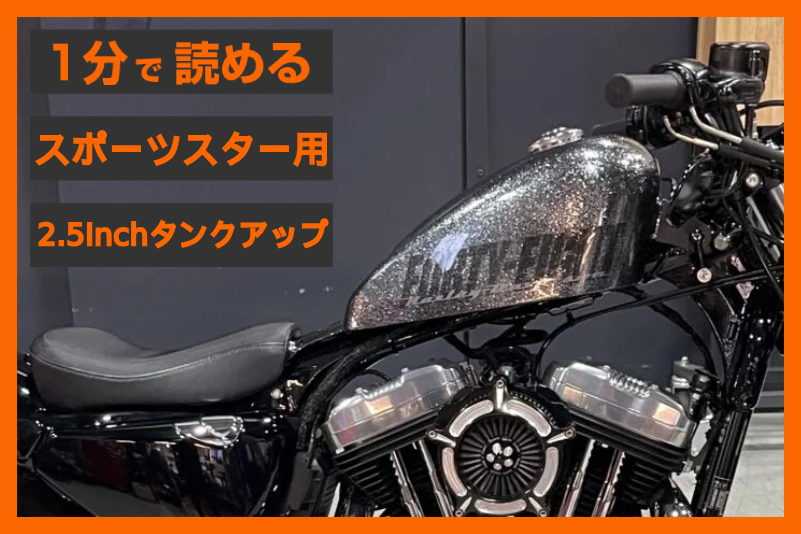 空冷スポーツスターにおいて、王道カスタムといえるフューエルタンクの「リフトアップ」ですが、スタイリッシュな見た目がカッコいいですよね。