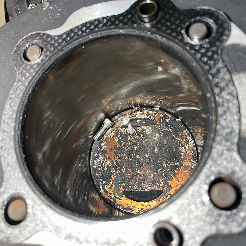 エアクリーナーのボルトが緩んで外れ、ピストンを損傷…。