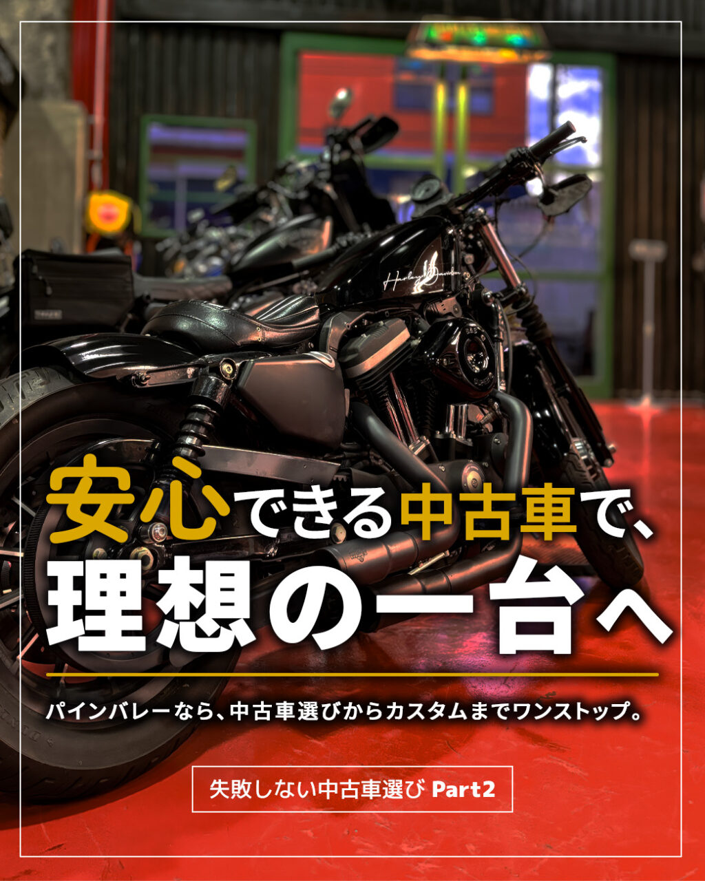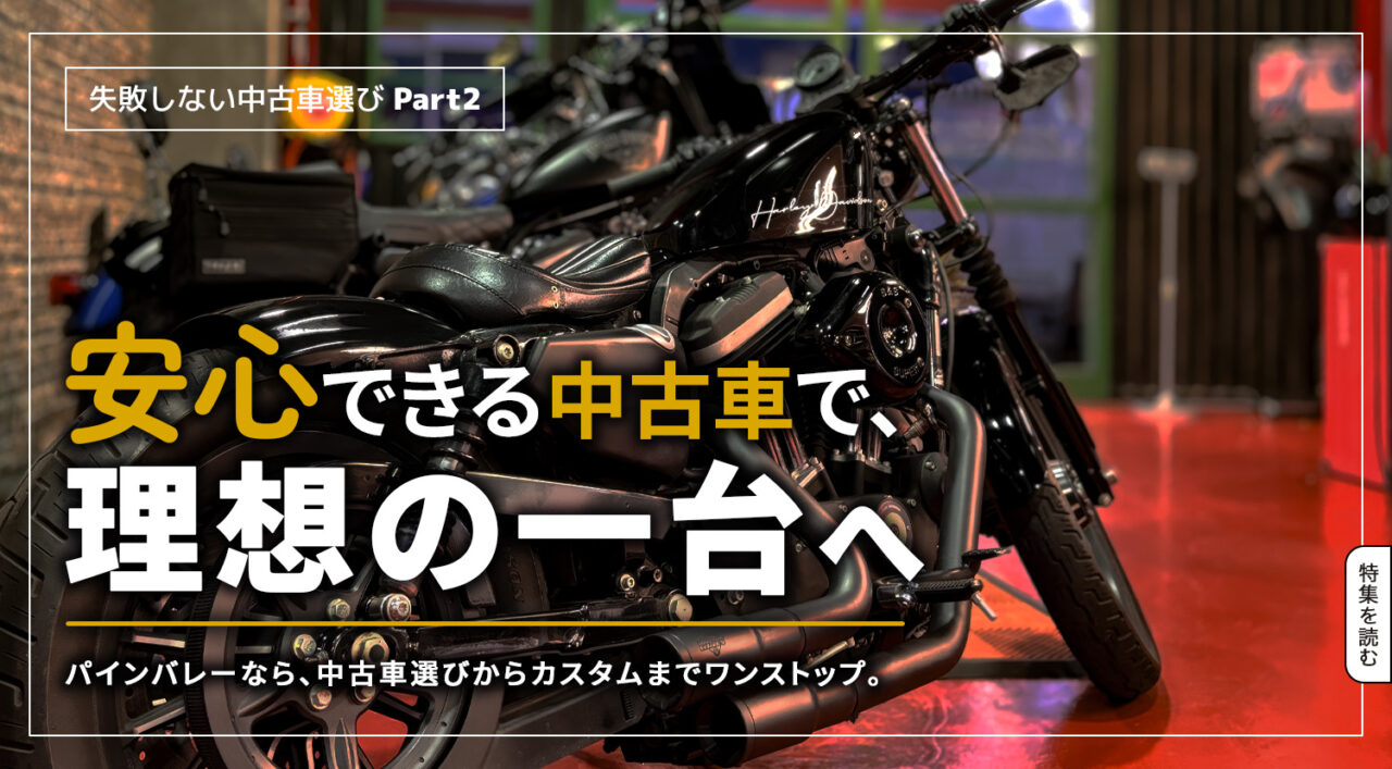 パインバレーでは、厳選した車両に整備とカスタムを施した中古ハーレーダビッドソンの販売も行っております。