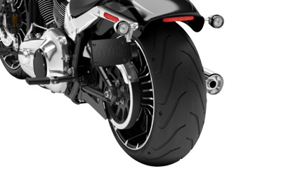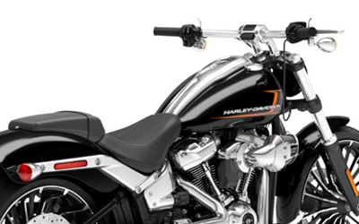 クルーザー(ソフテイル)ファミリーに属するFXBR ブレイクアウト(M8モデル)は、ドラッグレーサーの血統を受け継いだパワフルでスタイリッシュなモデルで、240mmの極太リアタイヤとロング&ローのシルエットが放つ存在感が特長です。