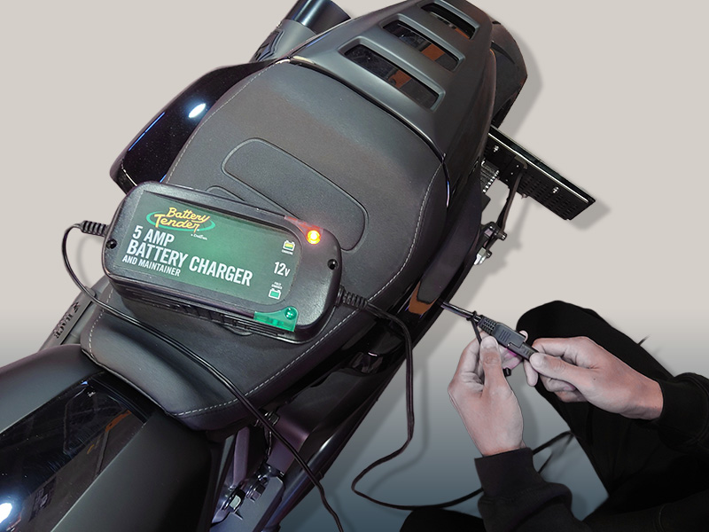 週に一度はバイクに乗るか、乗れない場合はバッテリー充電器に繋いで満充電を保つのがベストです。