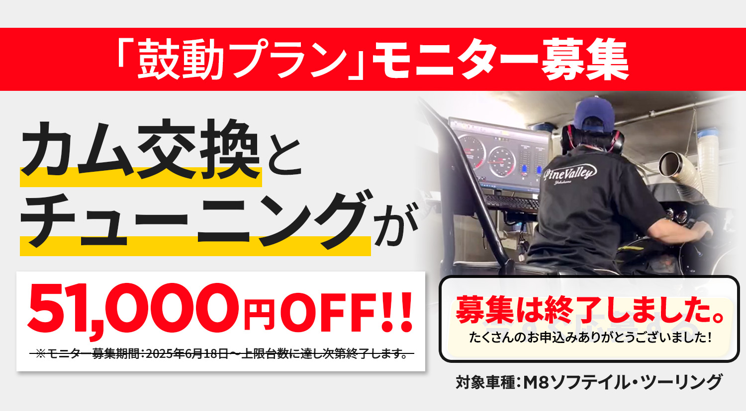 【募集は終了しました】M8ソフテイル・ツーリング オーナー様限定、新カスタムメニュー「鼓動プラン」先行モニター募集のお知らせ