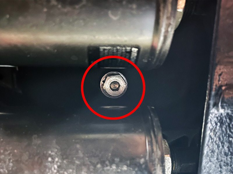 そこから下を覗き込むと、サスペンションの間にドレンボルトがあります。