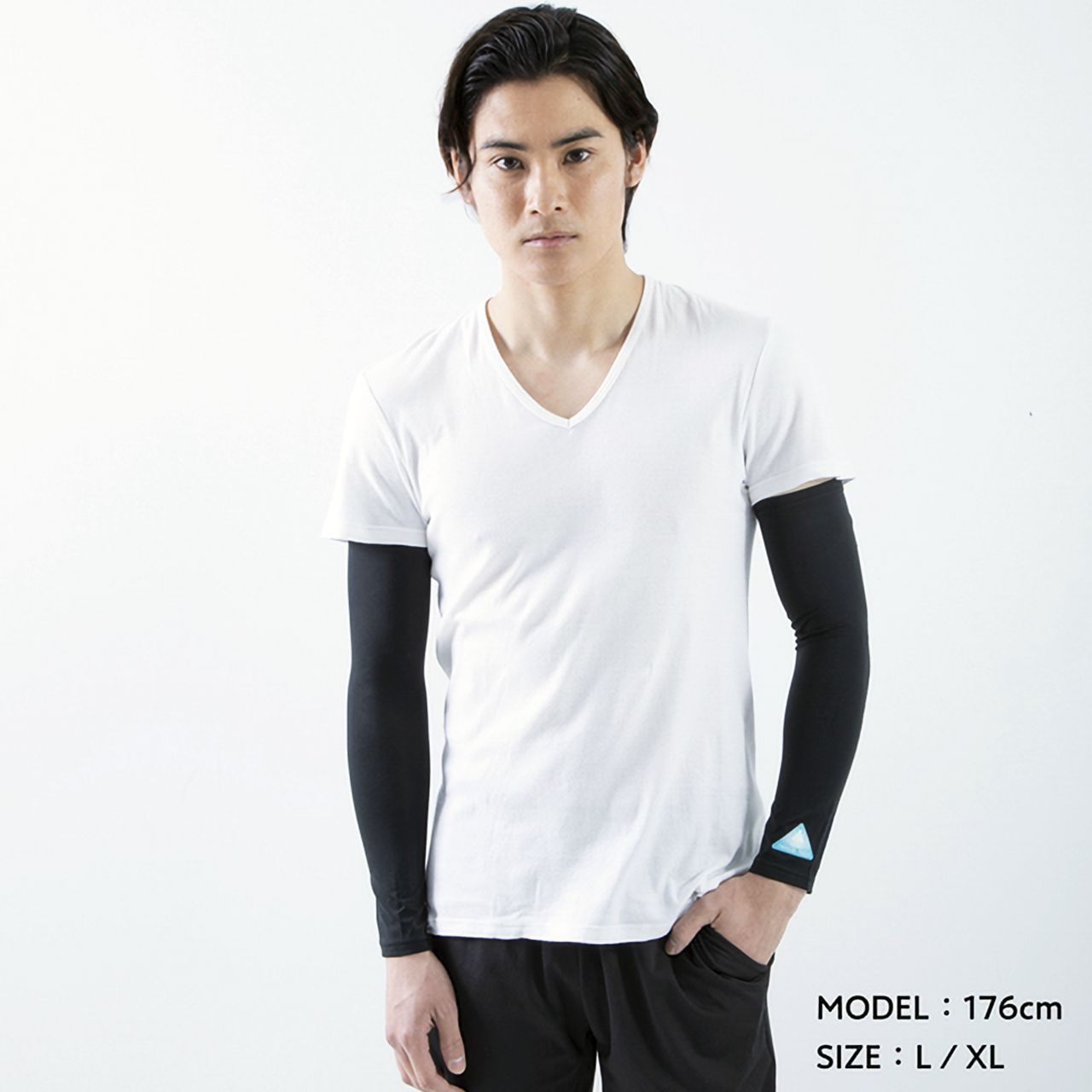 汗と風に反応して冷感が持続する「氷撃 冷感プリント」を備えたアームカバー