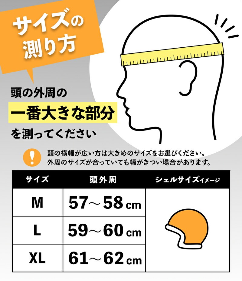 ※日本規格のへルメットなので、概ねサイズ通りに選んでOK!