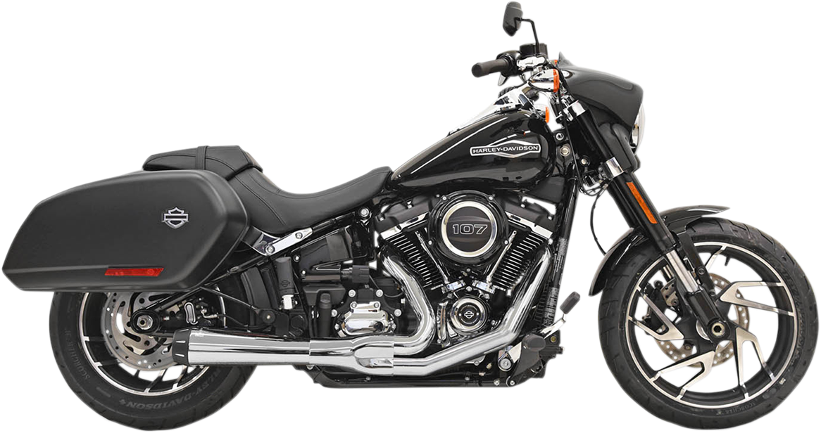 エキパイは1-3/4インチ(約4.4cm) 〜 1-7/8インチ(約4.8cm)径へステップアップする構造を採用。また2本のエキパイが同じ長さなので排気をスムースに流し、パフォーマンスを向上させます。
