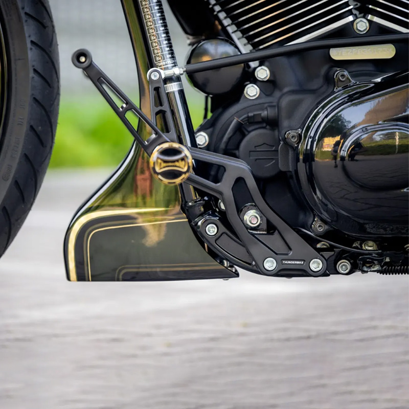 サンダーバイクの別売SP-Sデザインフットペグ(31-85-010)との相性が抜群です。※フットペグは付属しません。別途ご用意ください。