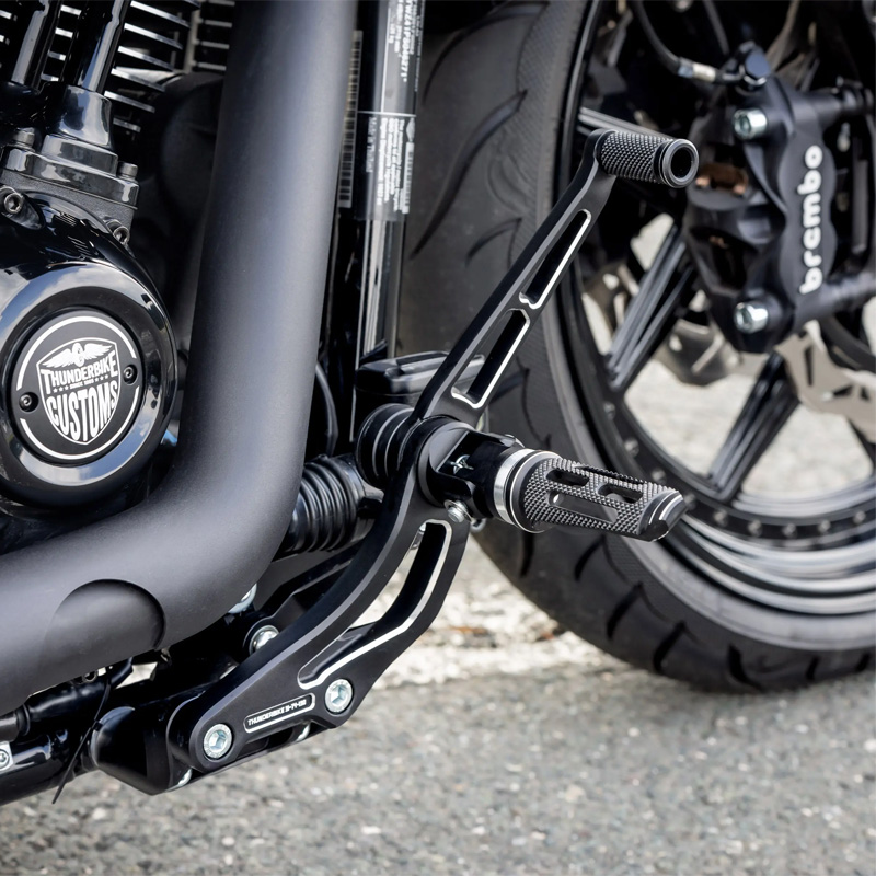 サンダーバイクの別売SP-Sデザインフットペグ(31-85-010)との相性が抜群です。※フットペグは付属しません。別途ご用意ください。