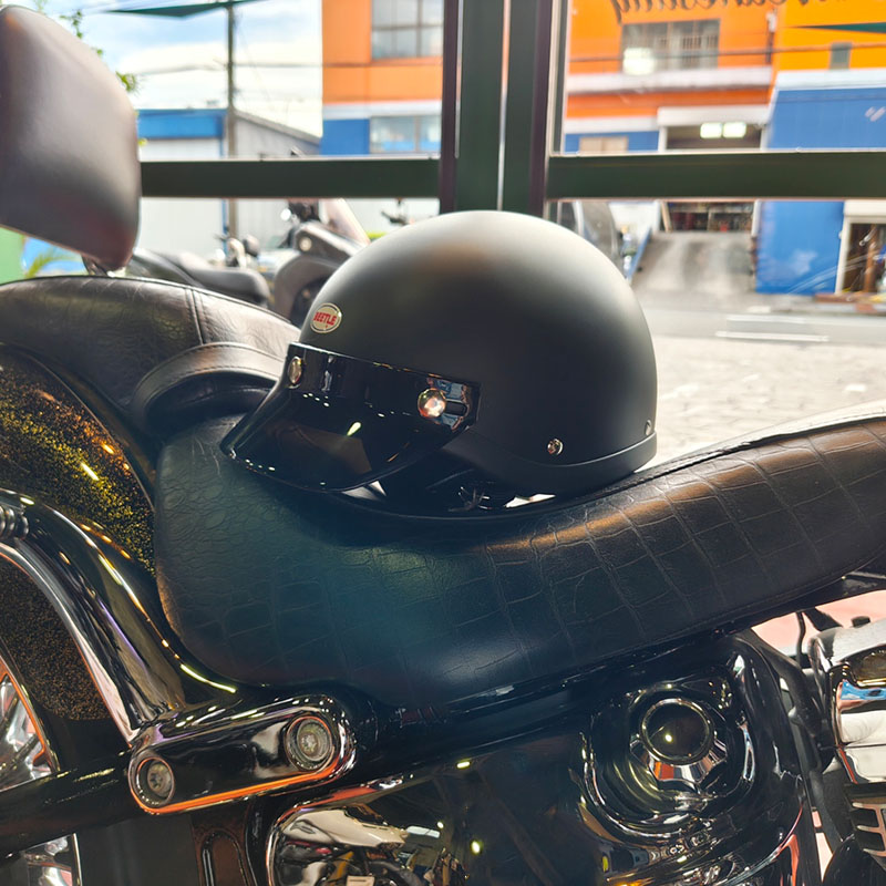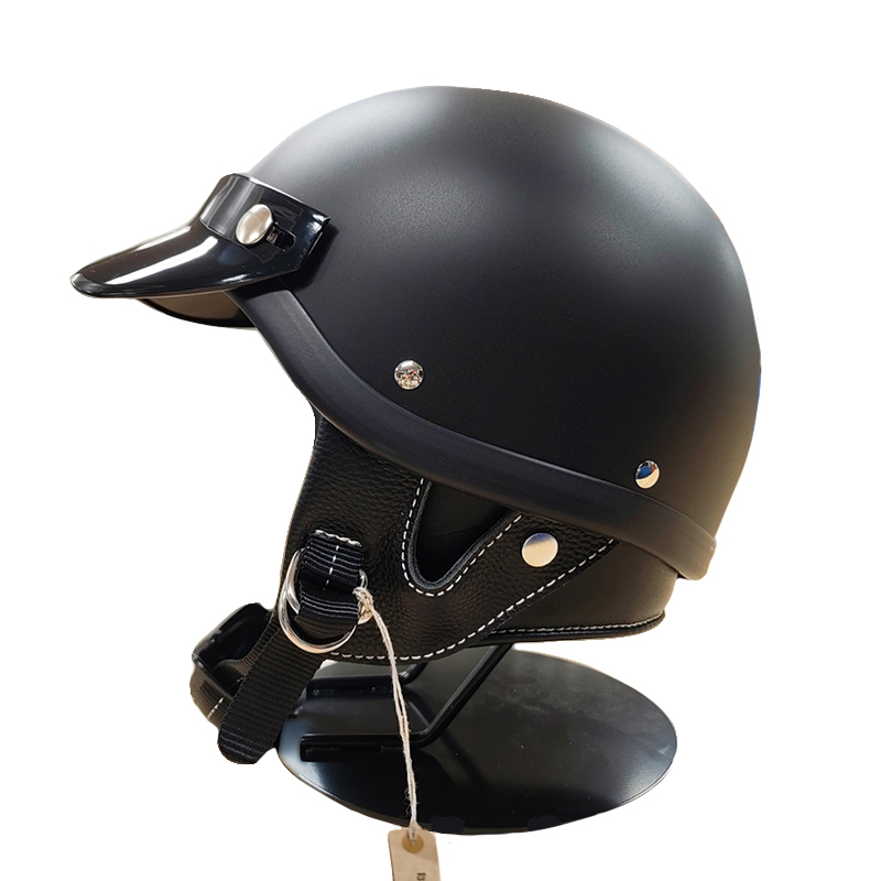 チョッパー、ボバー、ストックスタイルなど、あらゆるクラシックバイクに馴染む、ハーフキャップの王道です。