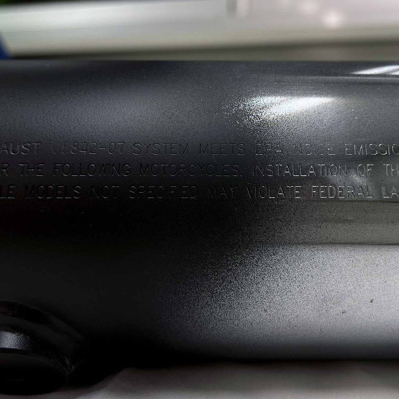 仕上がりは少し凹凸のあるマットブラックで、2018年以降のハーレー(ミルウォーキーエイトモデル)の純正仕上げに近い質感です。