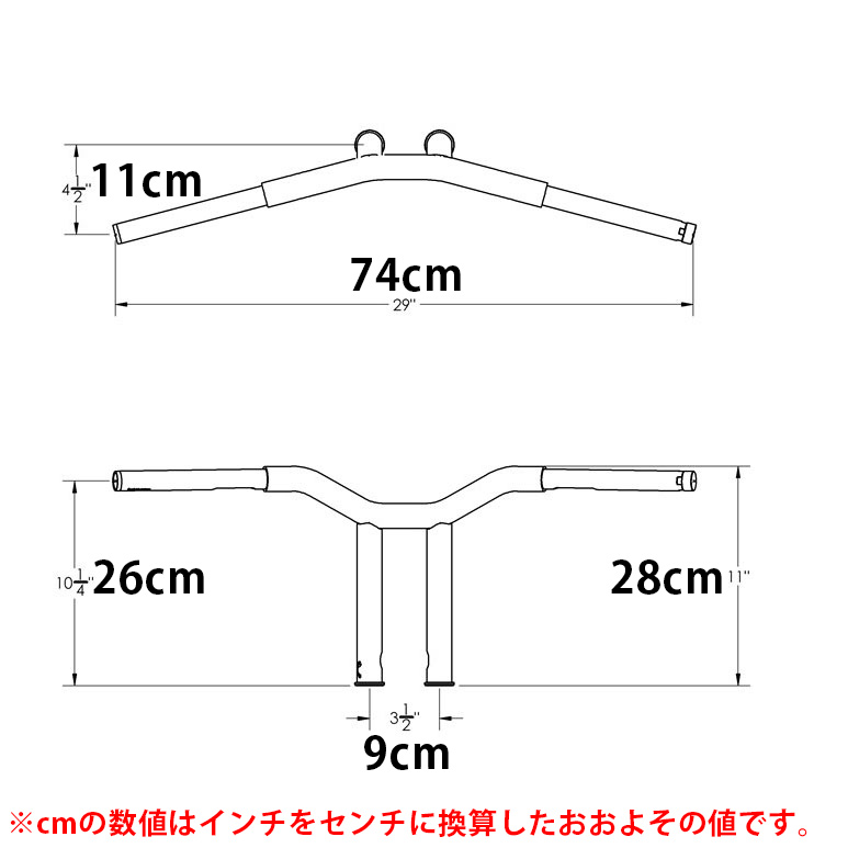 ●全体の幅は29インチ(約74cm)、真ん中の取り付け部は3.5インチ(約9cm)