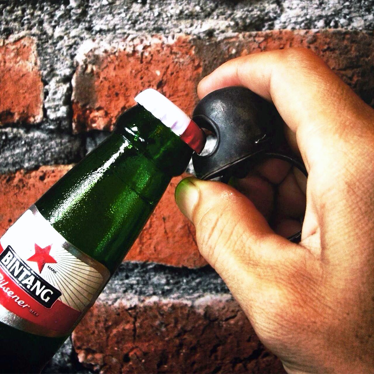 ●ただのキーホルダーではありません。ヘルメットのアゴ部分を「栓抜き」として使うこともできます!