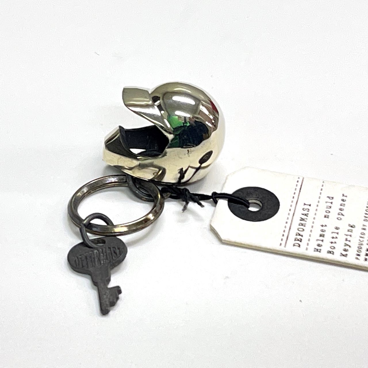 モトクロス風 ヘルメット型キーホルダー シルバー/ブラック DEFORMASI(デフォルマシ)