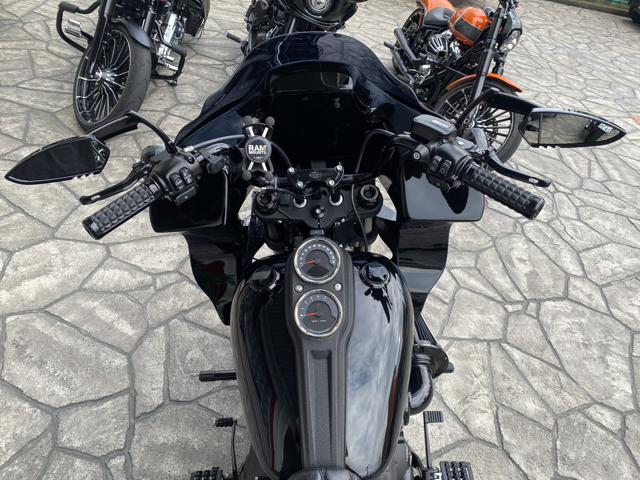 往年の名車FXRTのレプリカフェアリングにより、迫力あるスタイリングと高い防風効果を実現し、高速走行時の快適性を向上。