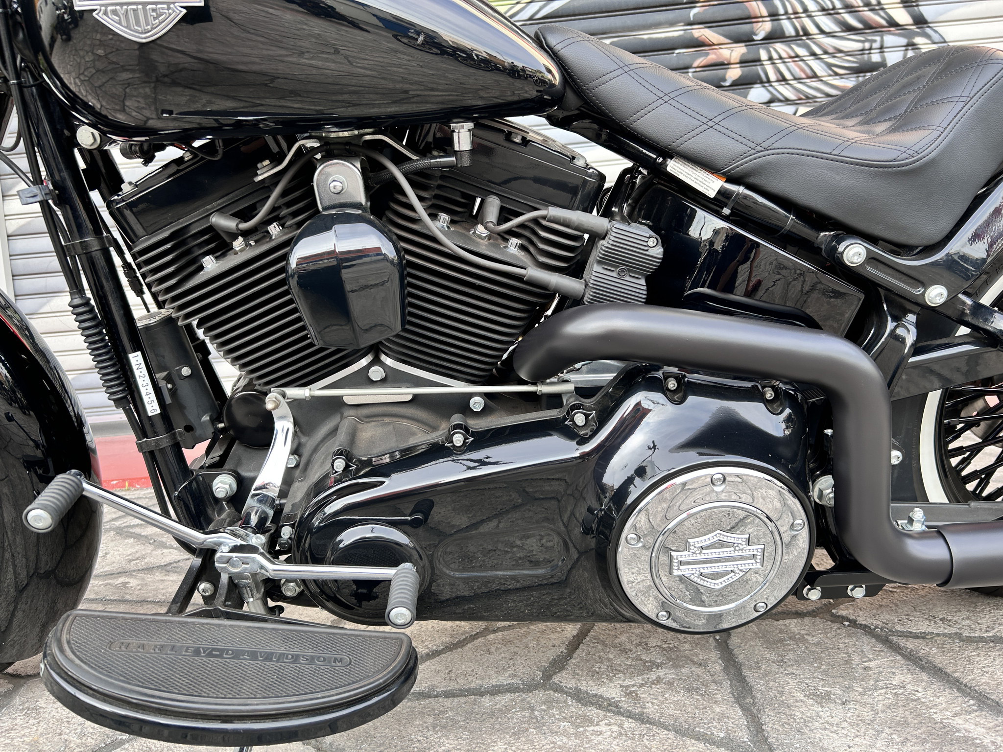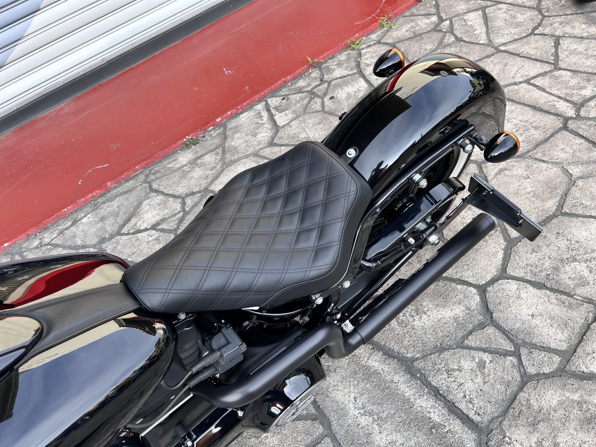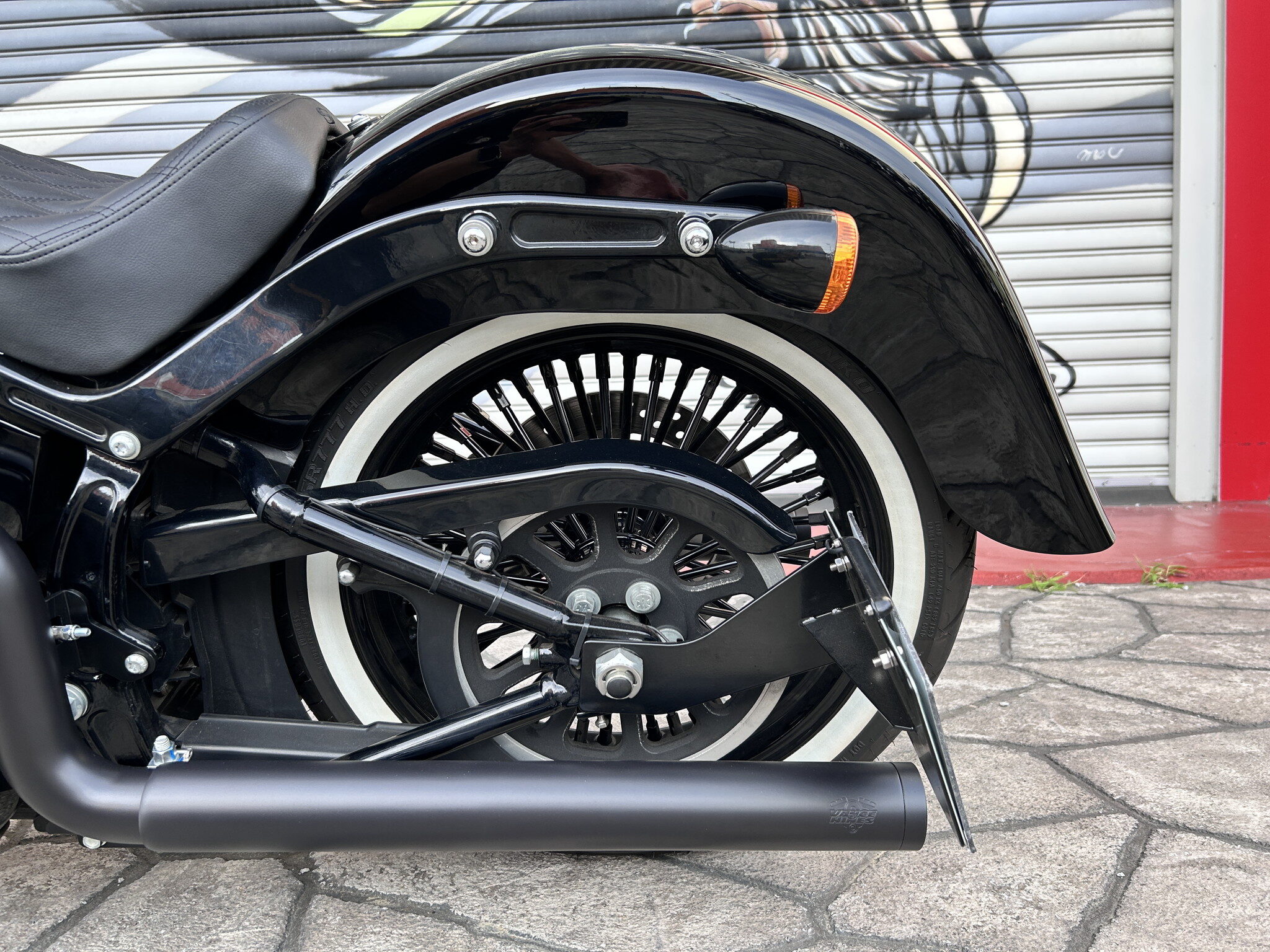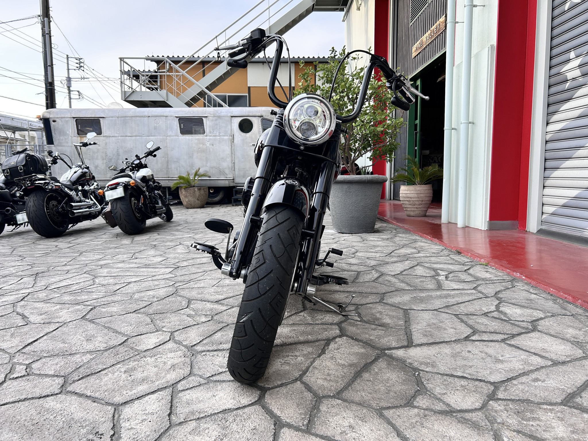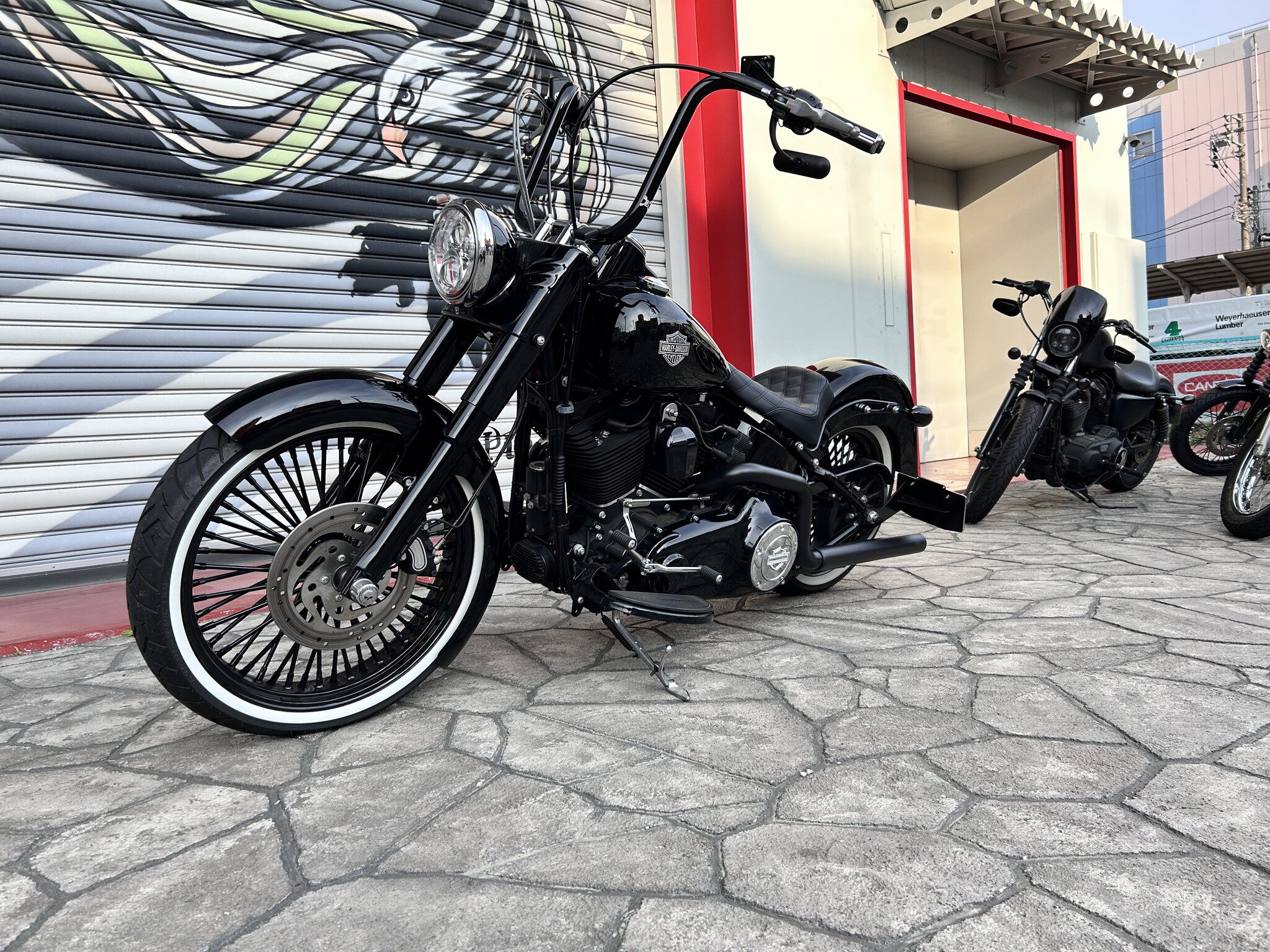 カスタムパーツをふんだんに使用、迫力のあるチョロスタイルに仕上げられた、ツインカムソフテイルスリムです。各部品にはパウダーコートを施し、全体をブラックアウト仕様としています。クロームベースのチョロスタイルとは違い、引き締まった印象のカスタムに仕上がっています。