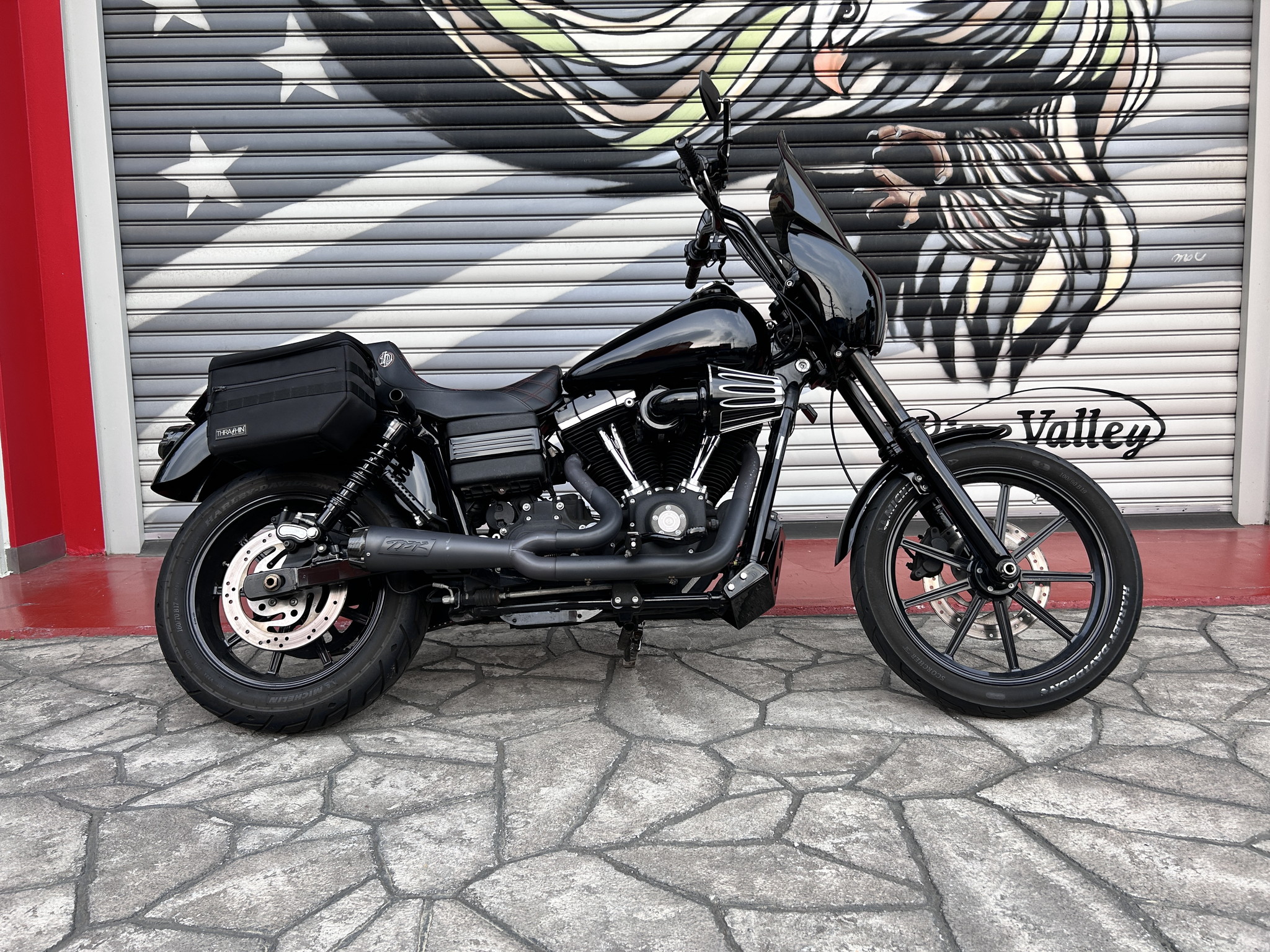 人気の絶版モデル「ダイナ・ストリートボブ」のフルカスタム車両です。注目度の高いクラブスタイルに仕上げられ、各部にこだわりのパーツを多数装着。さらにインジェクションチューニング済みのため、ハーレー本来の鼓動感と力強い走りを堪能できます。