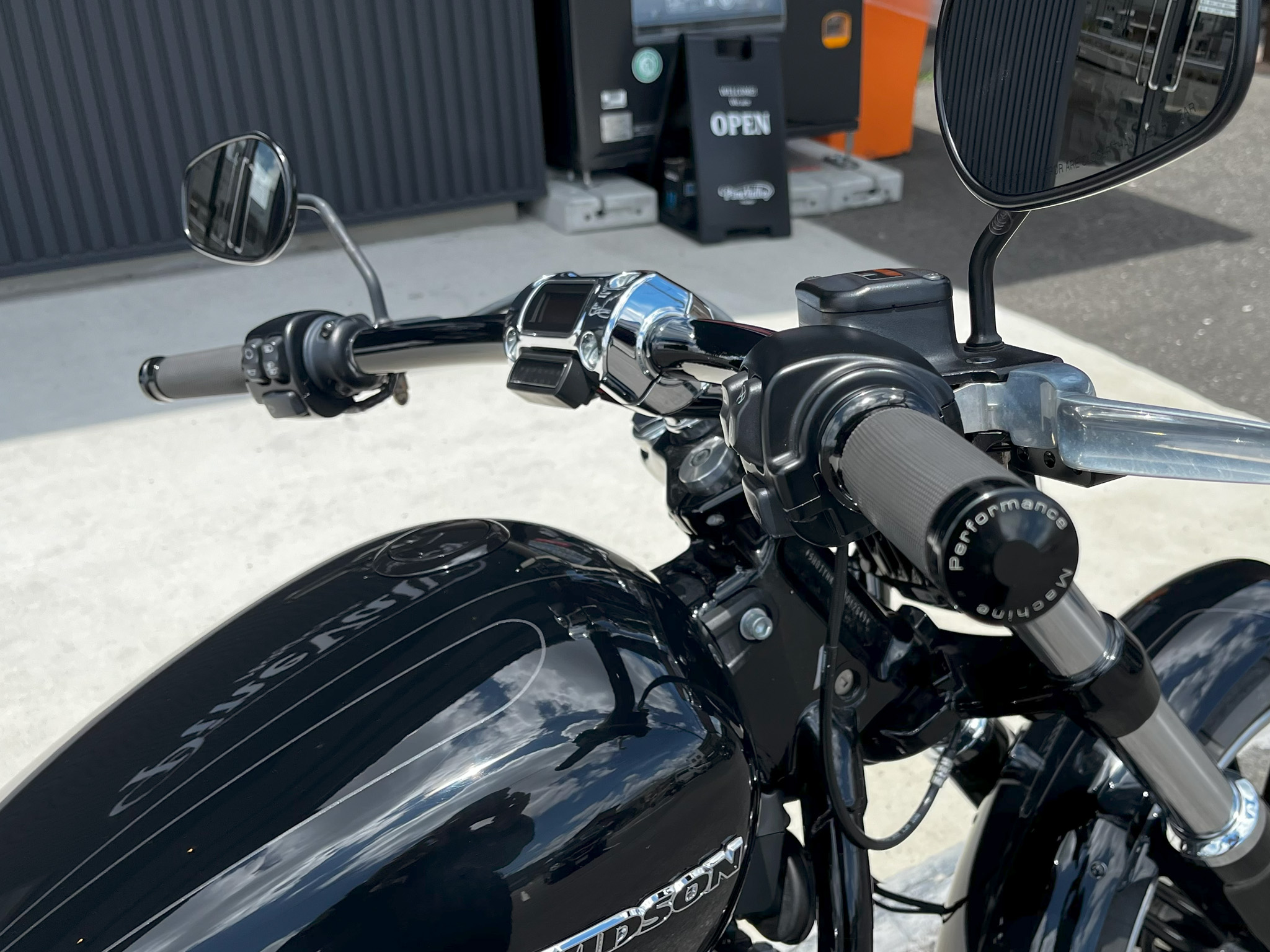 チューニング済みの車両のため、ノーマル仕様に比べてハーレーらしい鼓動感がより強く、パワフルな走りを楽しめます。さらに、パインバレーがS&Sと共同開発したジャパンスペックカムへの交換により、全体的なパワーとトルクも大幅に向上しています。
