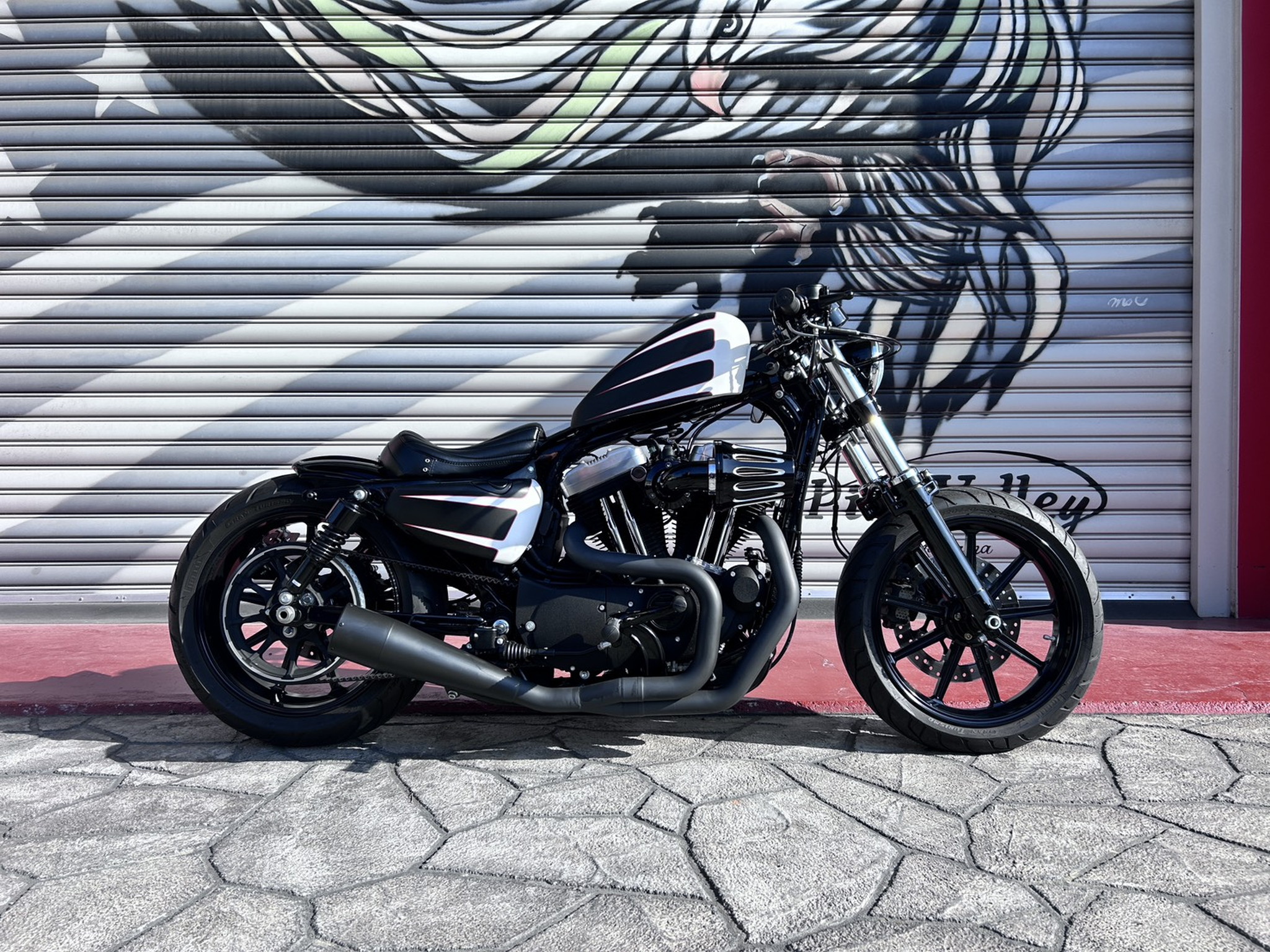 17インチホイールやローダウンサスペンション、フェンダーストラットとショートフェンダーの組み合わせにより、洗練されたボバースタイルへと昇華させました。タンクとサイドカバーに施されたスキャロップペイントが、他にはない個性を際立たせています。