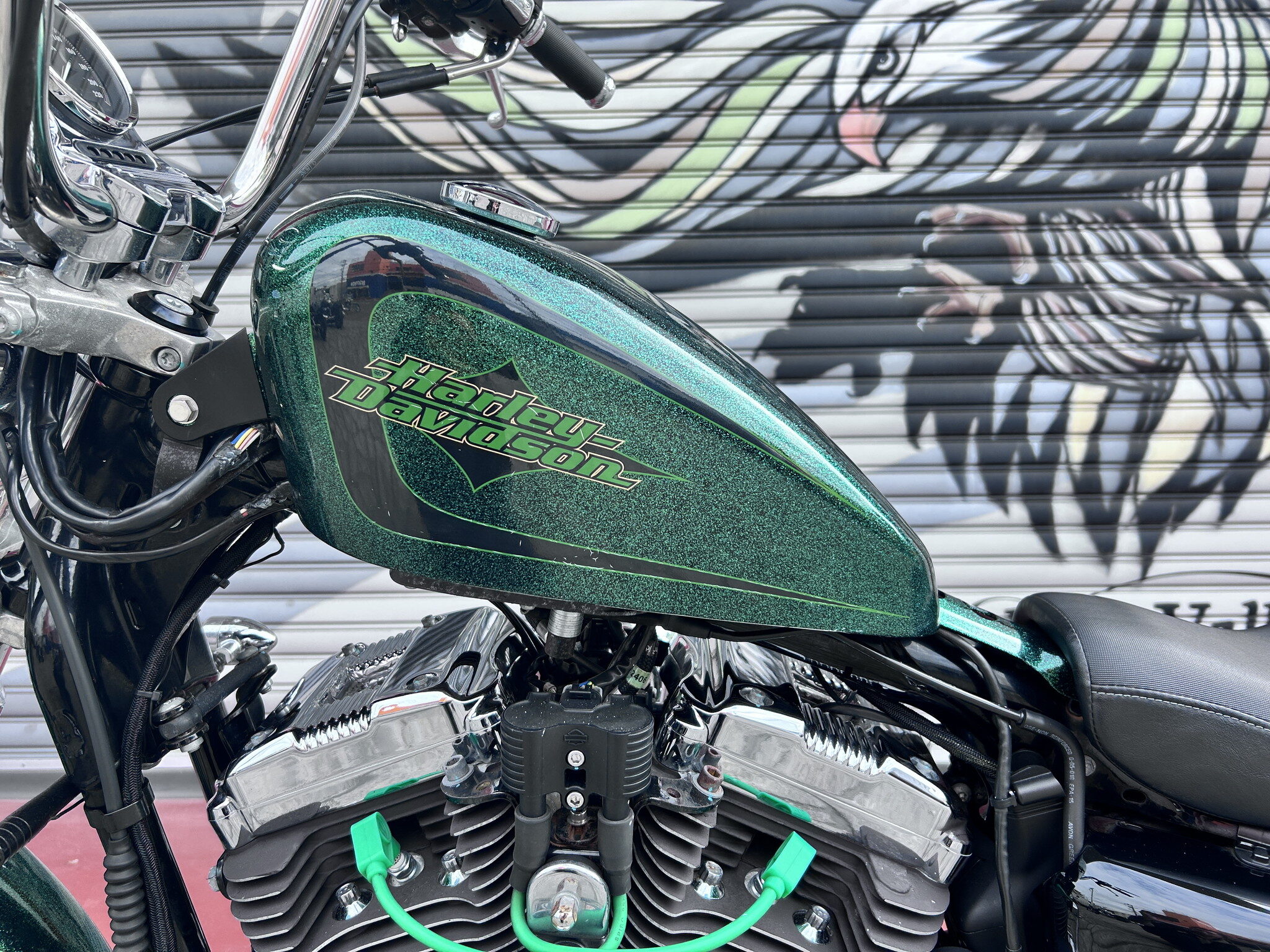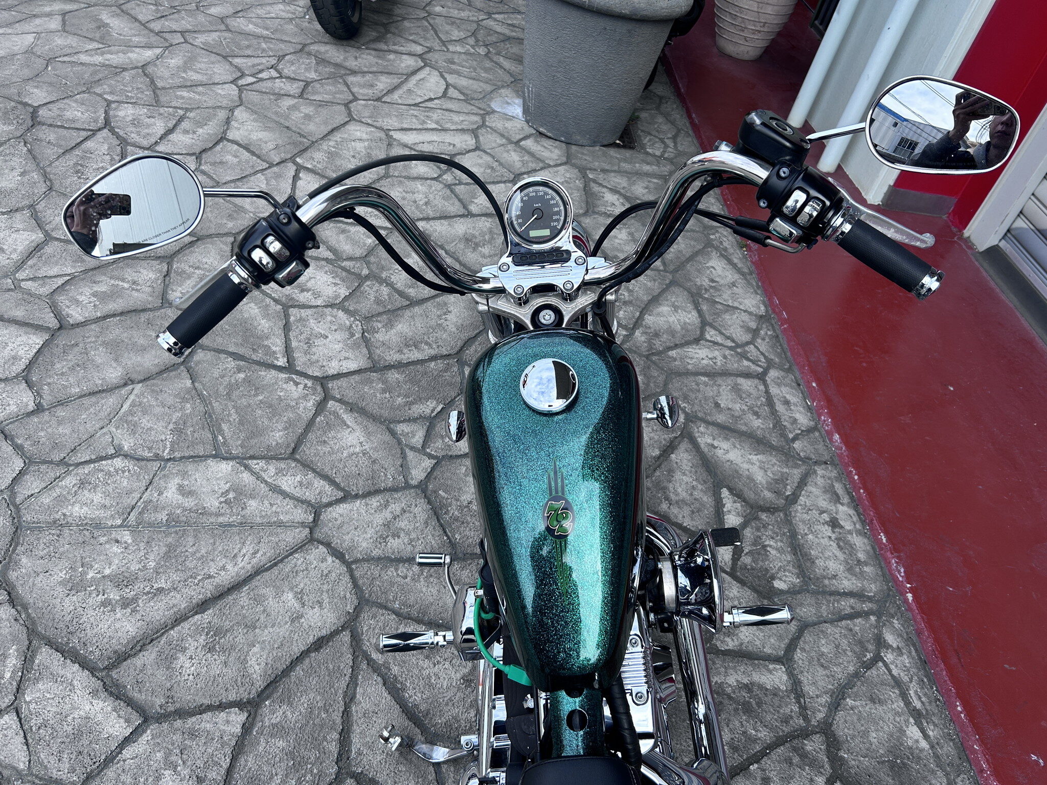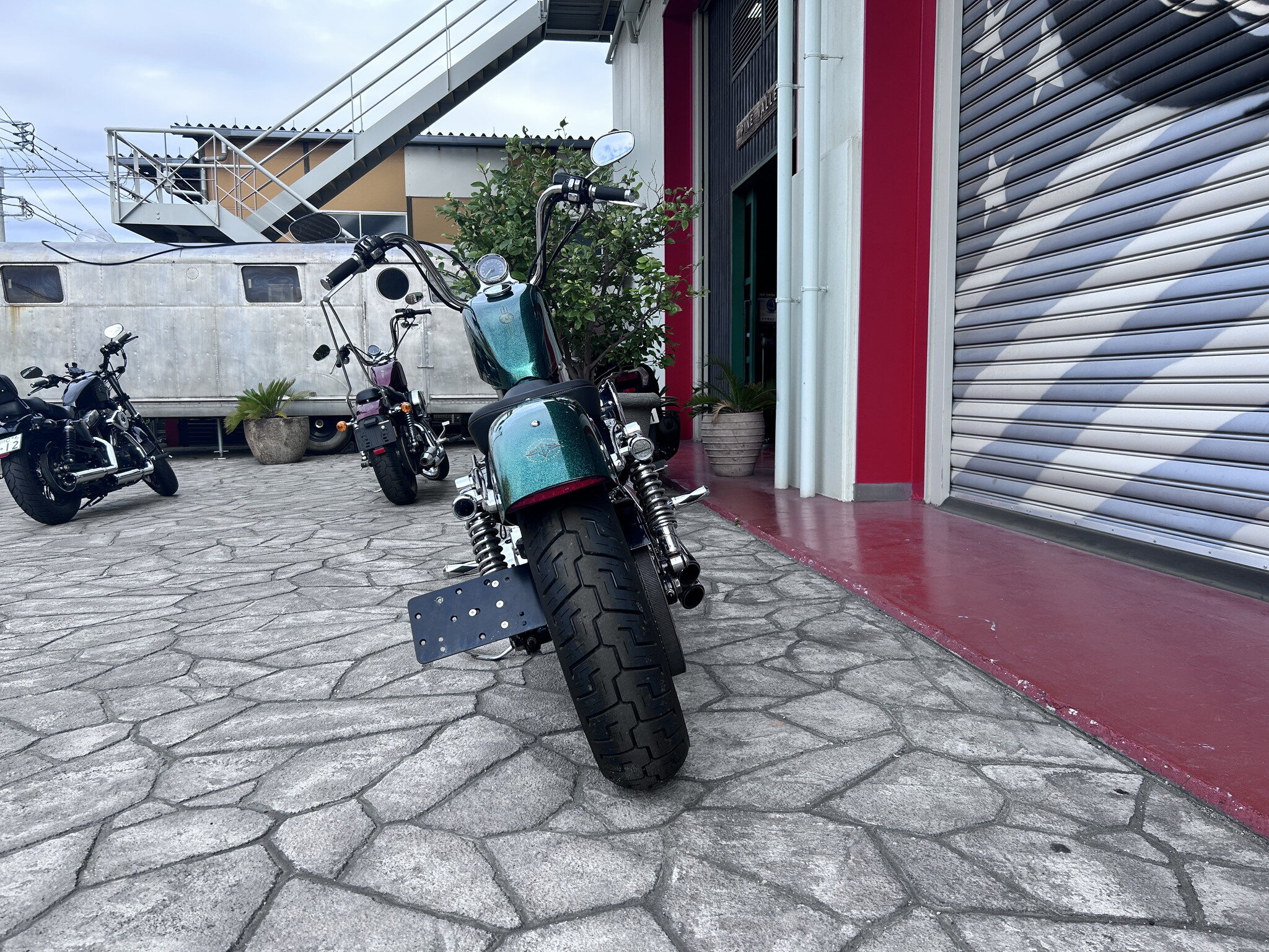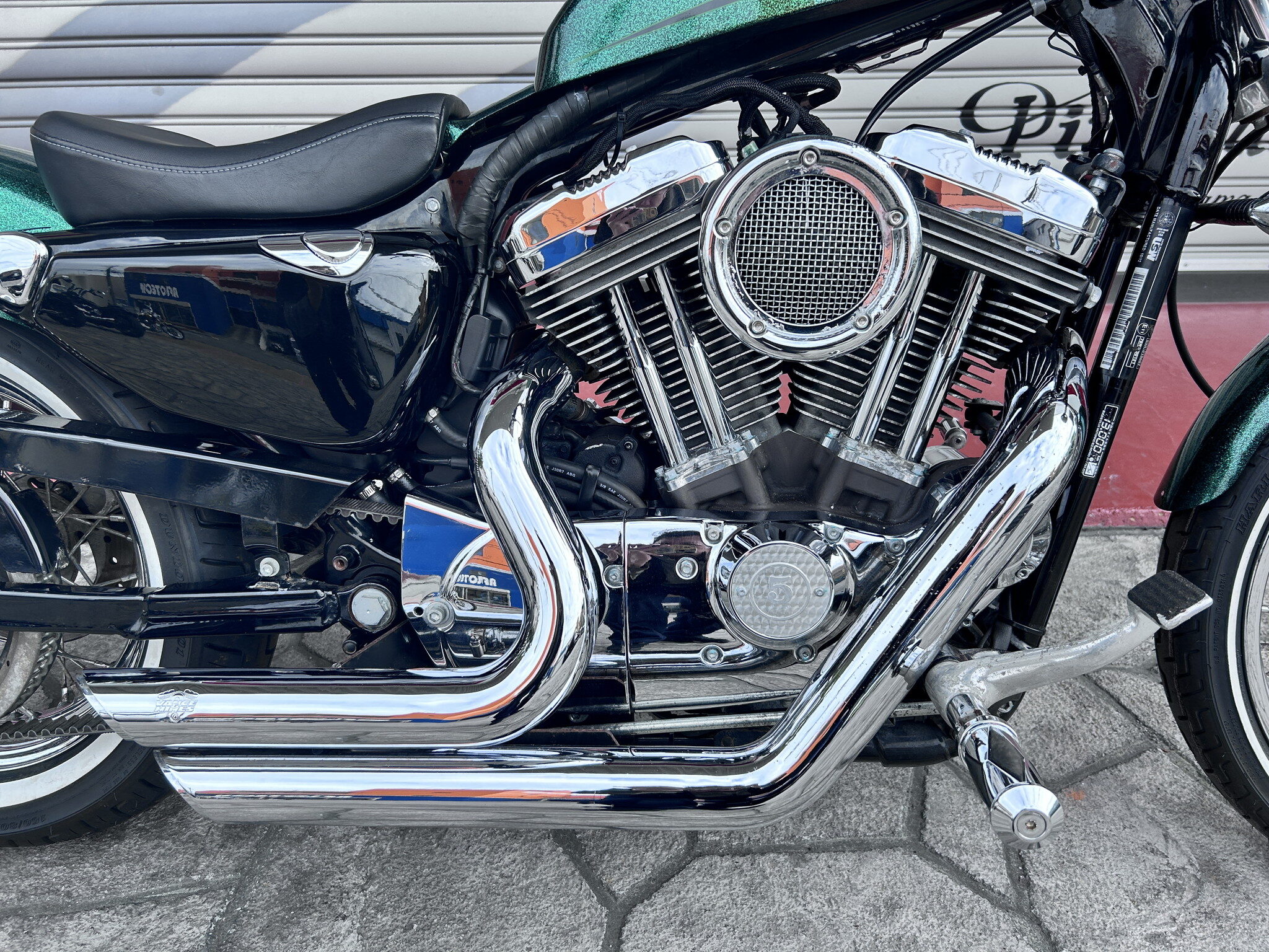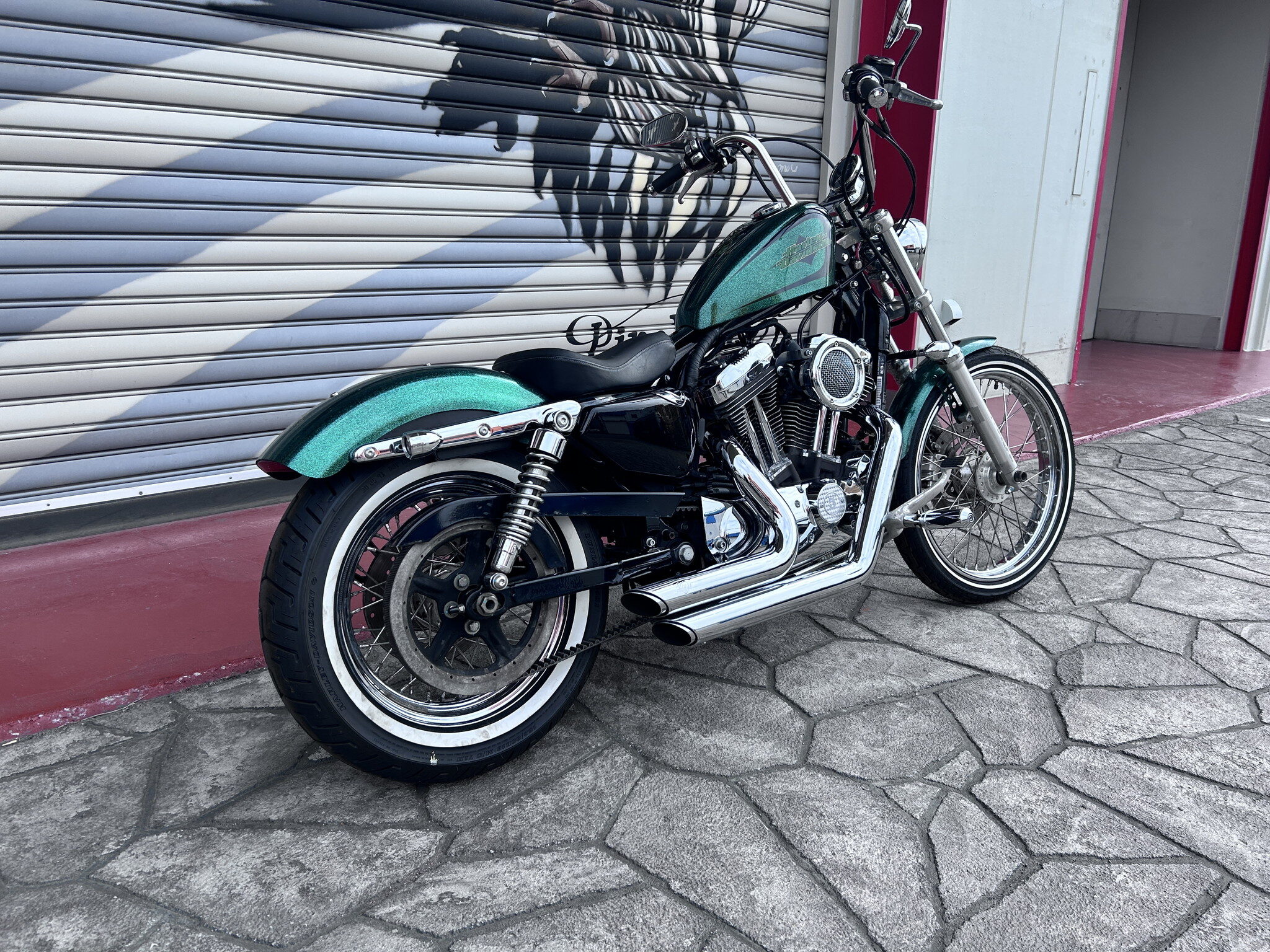 希少な絶版スポーツスターモデルが入庫しました!キャンディグリーンフレークの外装とクロームの輝きが特徴的で、車体全体に統一感あるカスタムが施され、見た目・走りともに存在感バツグン。ストリートでもガレージでも映える、個性あるスポーツスターをお探しの方におすすめです。
