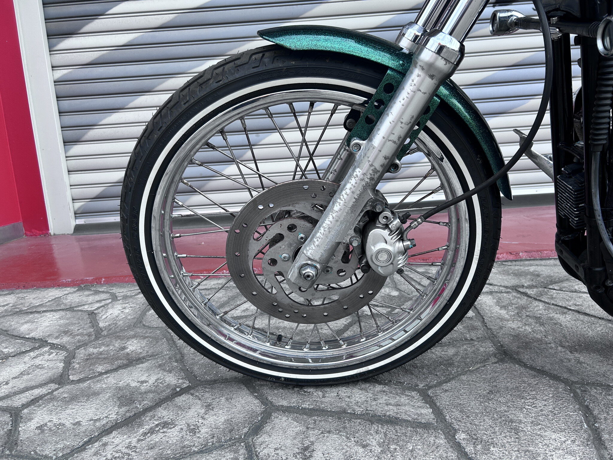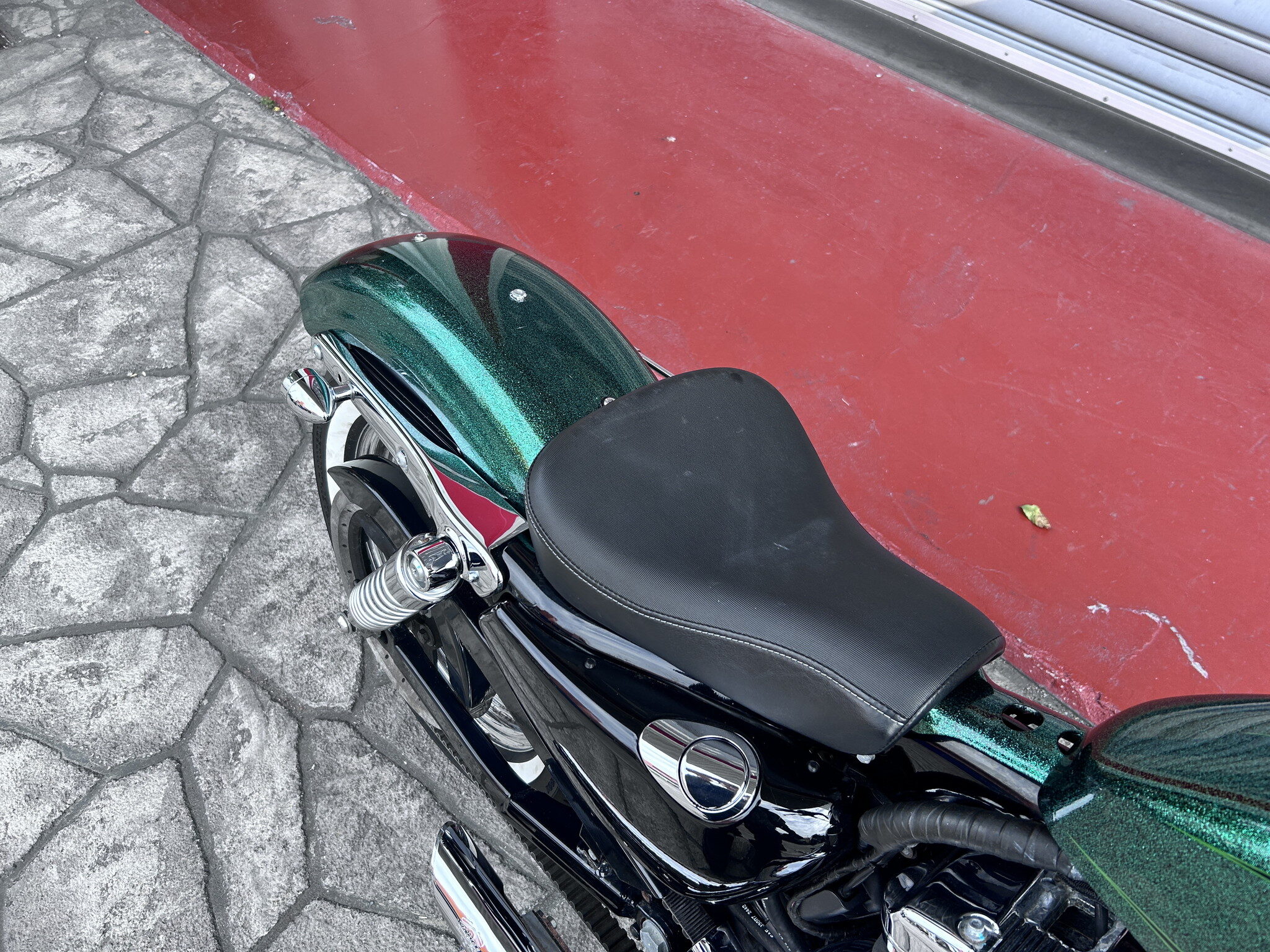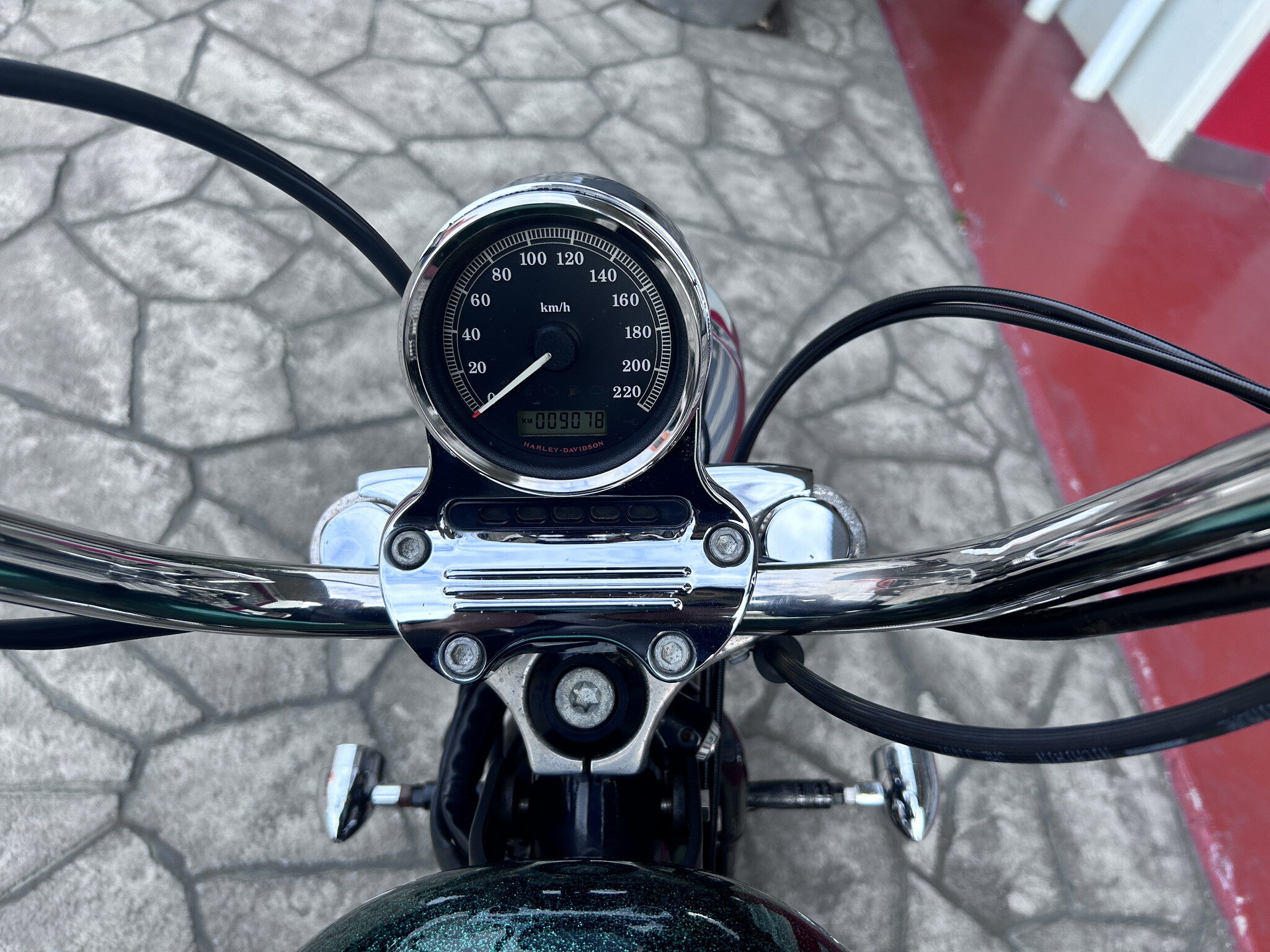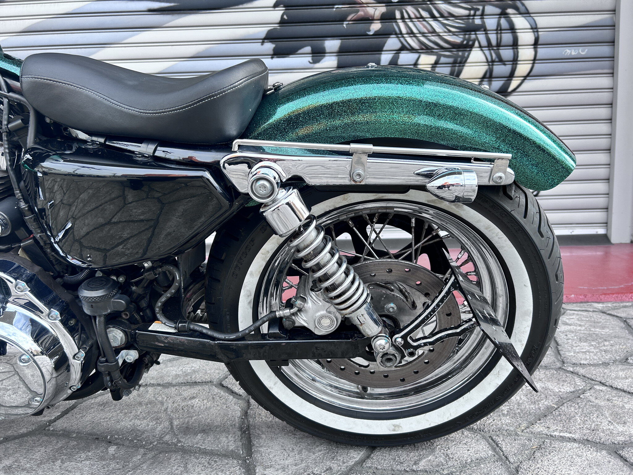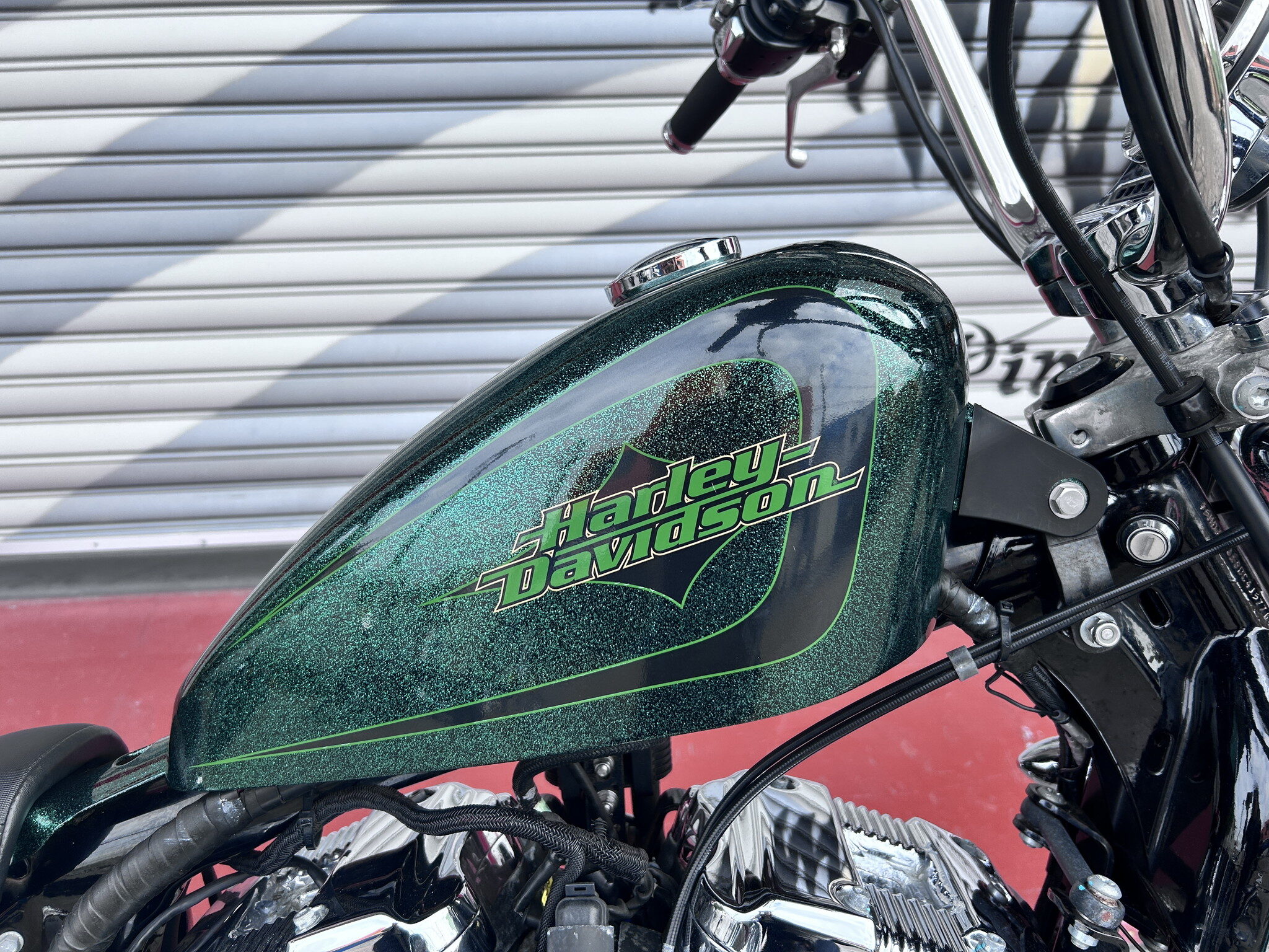 希少な絶版スポーツスターモデルが入庫しました!キャンディグリーンフレークの外装とクロームの輝きが特徴的で、車体全体に統一感あるカスタムが施され、見た目・走りともに存在感バツグン。ストリートでもガレージでも映える、個性あるスポーツスターをお探しの方におすすめです。