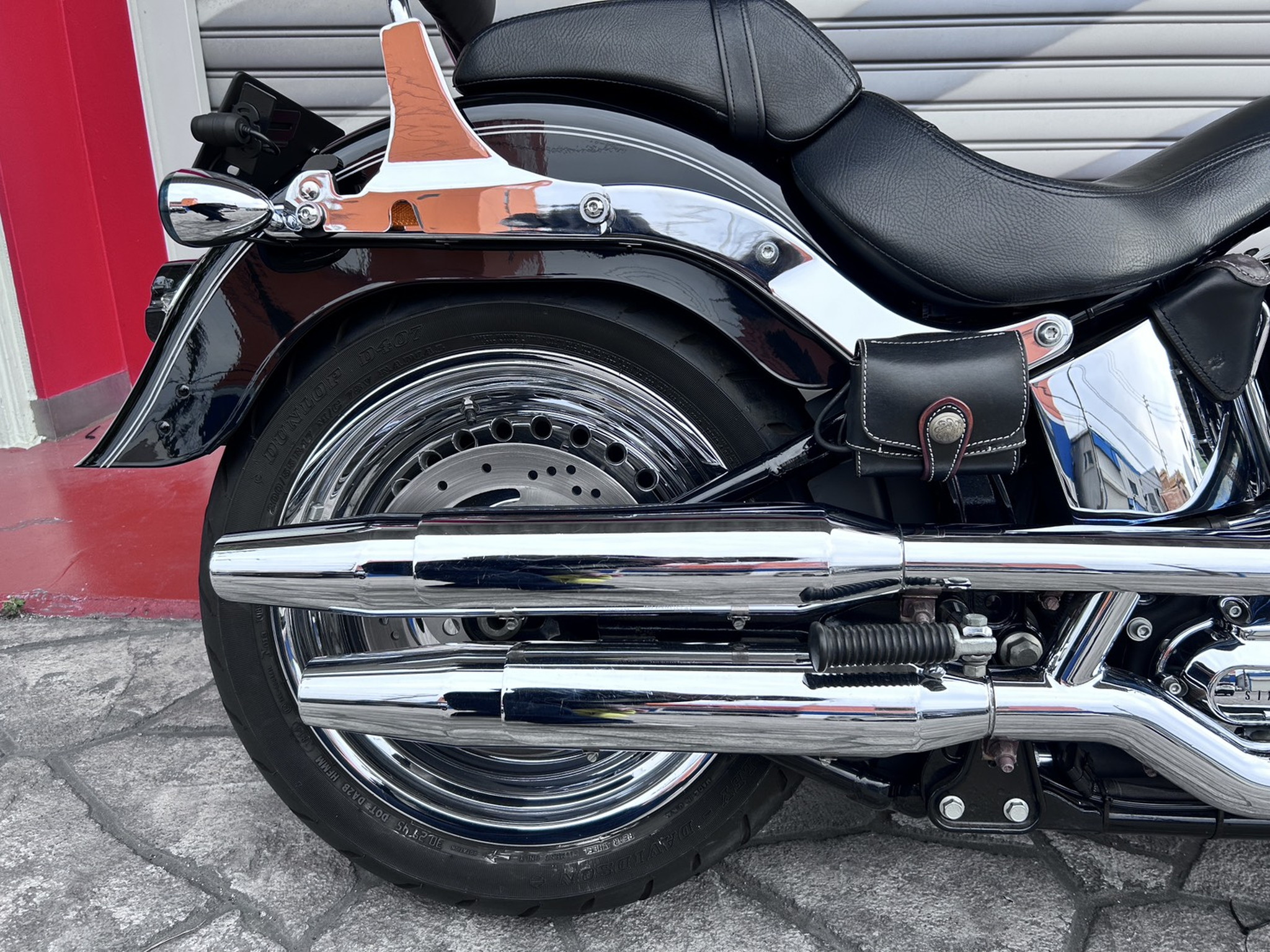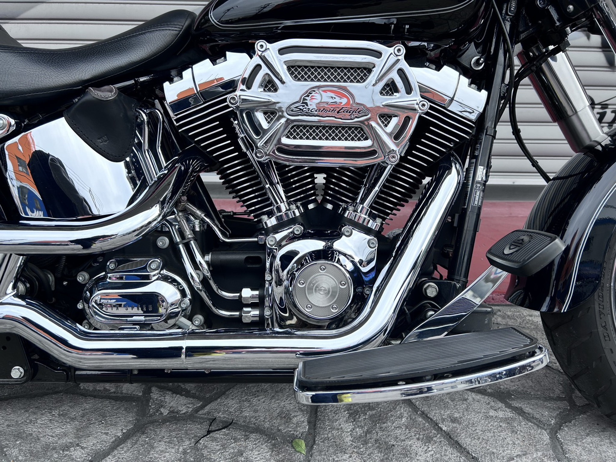 1990年のデビュー以来、映画『ターミネーター2』への登場で圧倒的な知名度を得たファットボーイです。クラシックな大型ナセルやディッシュホイールといった伝統的なデザインを継承しつつ、年式を感じさせない良好なコンディションを保っています。さらに、ハーレー純正スマートセキュリティやドライブレコーダー、ETCなど現代的な装備も備えた、非常に魅力的な一台です。