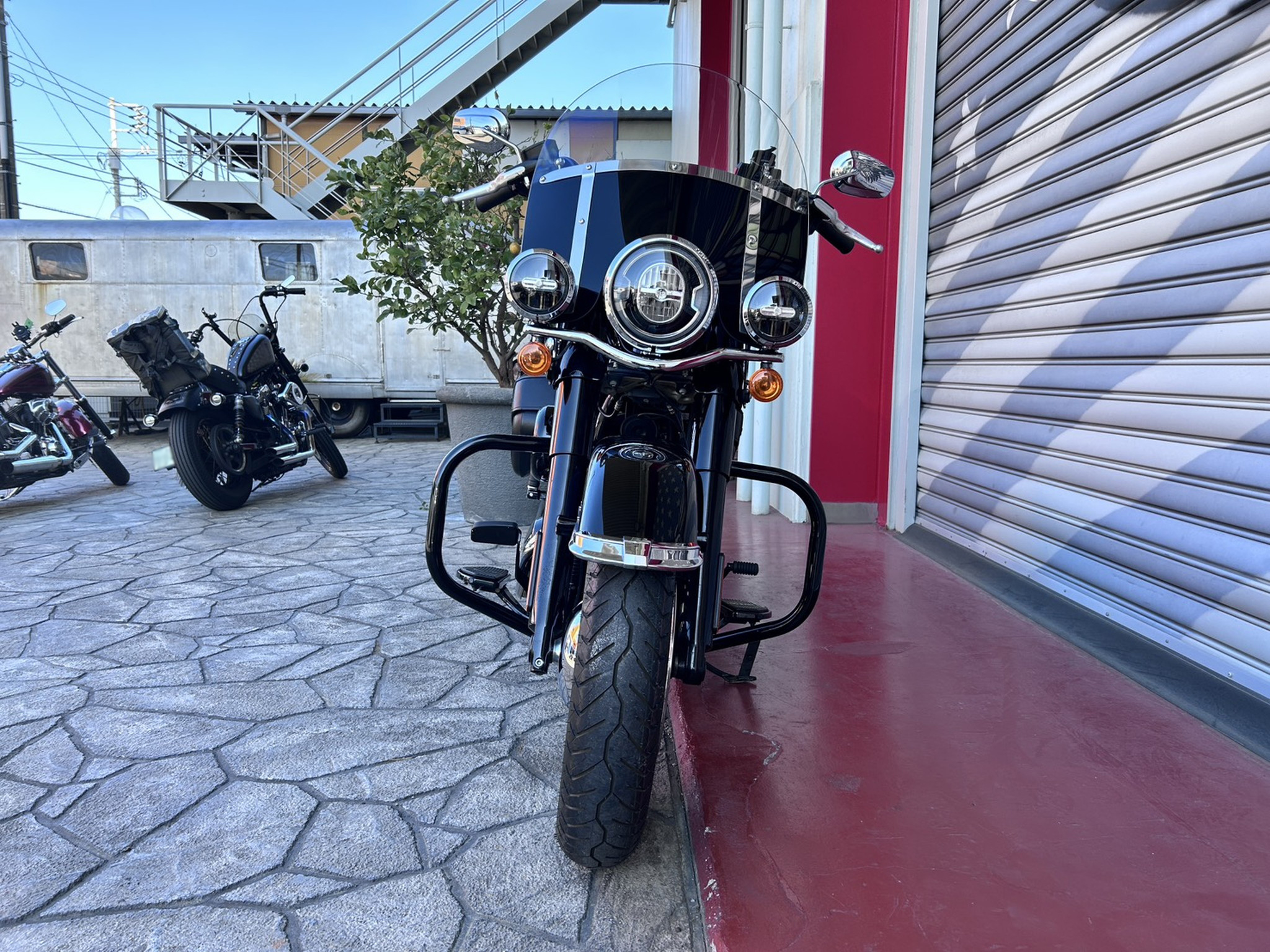 前後16インチのスポークホイールや大型サドルシート、サドルバッグといった王道のクラシックスタイルはそのままに、2018年以降はブラックアウトされた外観とLED、ABSなどの近代装備を採用し、伝統と進化を融合させています。