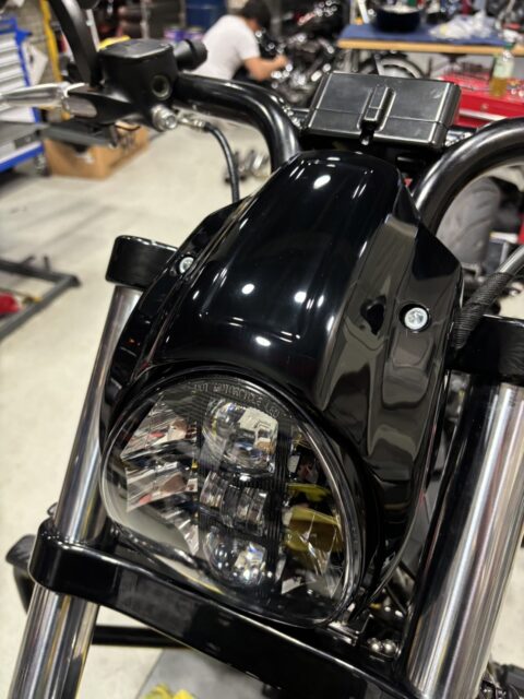 今日はサンダーバイクのヘッドライトバイザーとフロントフェンダーを取り付けです!