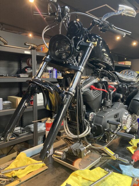 カスタムのご依頼でお預かりのXL1200X、「ちゃんと安心して乗りたい!」とのことで点検のご依頼を追加で頂きました。