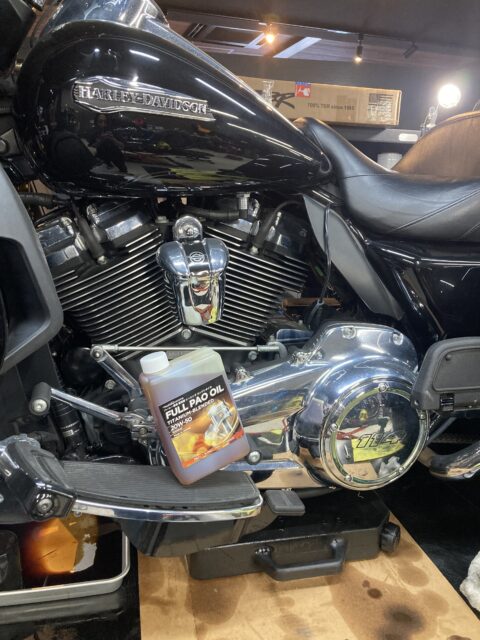 今回、オイルの交換依頼も頂いており、エンジンオイルはパインバレーオリジナルのフルPAOオイルを使用します。