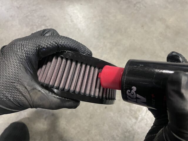 このオイルは、外気中の細かなチリやゴミなどをエンジン内に混入しないように塗布しています。