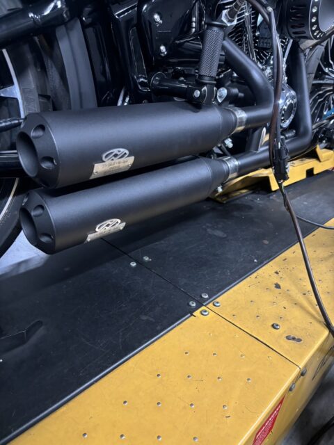 フルエキゾーストでヘッダーパイプから変わっているためスリップオン部分の出面が揃いワイドタイヤがより強調されますね!