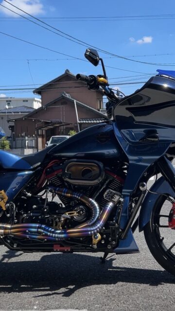 パフォーマンスバガーに極振りされたマコシャークブルーのFLTRXSEにチタン2in1マフラーは反則級のカッコ良さと迫力がありますね。まだ今後もブレーキ廻りやチューニングのご予約も頂いていますので仕上がりが楽しみです。