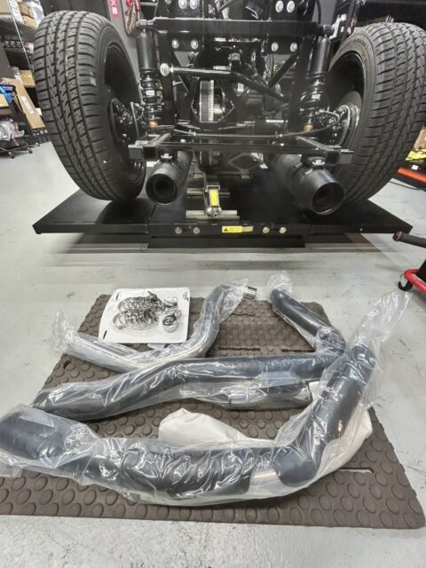 吊り下げ式の取付マウントはアクセスしにくい箇所になるので、リアを一式下ろして作業になります。迫力のある排気音に生まれ変わりますので、楽しみにお待ちくださいね。