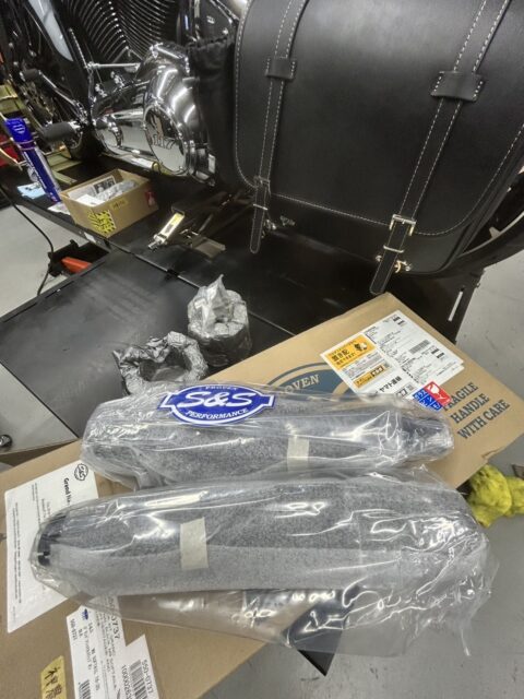 本日はFXBR117のマフラー交換です。S&S グランドナショナルスリップオンを取付させて頂きました。