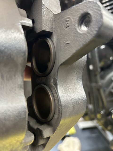 パインバレーの車検整備の項目にあるブレーキパッド、キャリパーの清掃と注油の作業の一部です。