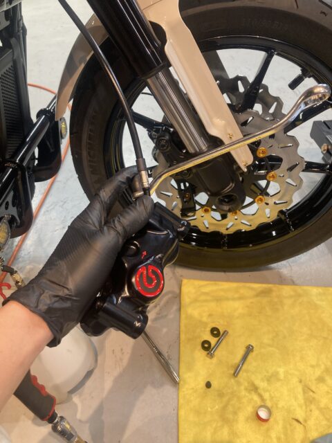 確認してみると、たしかに踏みしろ握りしろが多く、ブレーキの効きが悪いフカフカの状態でしたが、しっかりエア抜きを行いカチっと効くようになりました!
