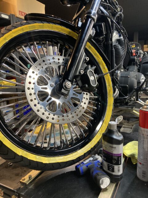 タイヤのエア漏れはおかげさまでしっかり完治したので、塗装がくたびれていたホイールリムの磨きとタッチアップをしました。