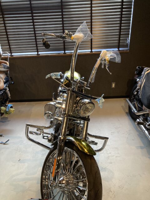 こちらのブレイクアウトCVO、HARD CANDY CUSTOMシリーズのゴールドのボディカラーで純正状態でもゴリ目立ちの車両なのですが、ハンドル周りもカスタムすることによってさらに尖った仕様になります!