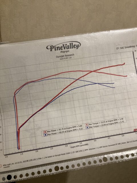 結果は馬力、トルク共に大幅にUPし、カム交換によって音量が上がって音質も迫力あるものとなりました!